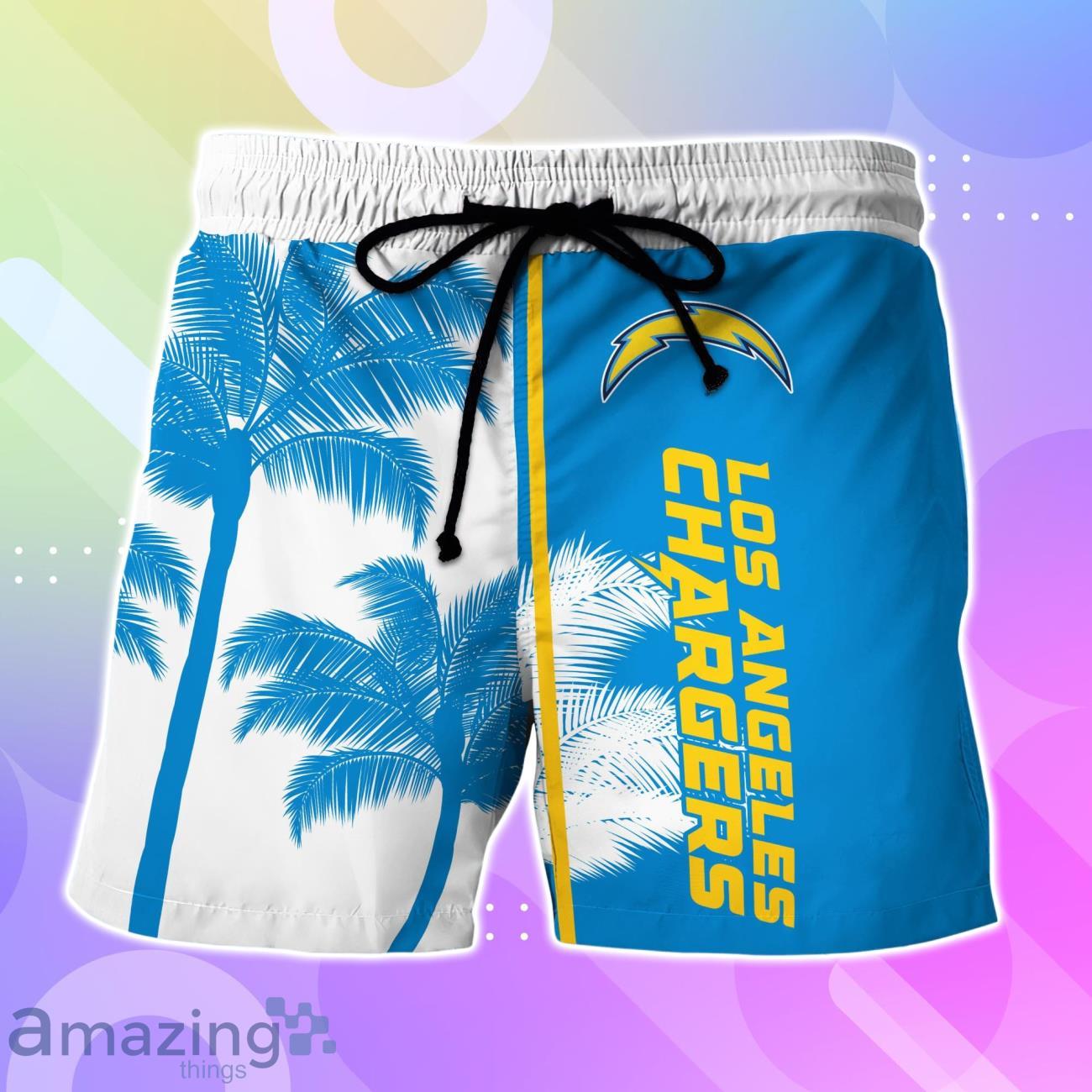 Los Angeles Chargers Hawaiian Shirt And Short Palm Tree Custom Name