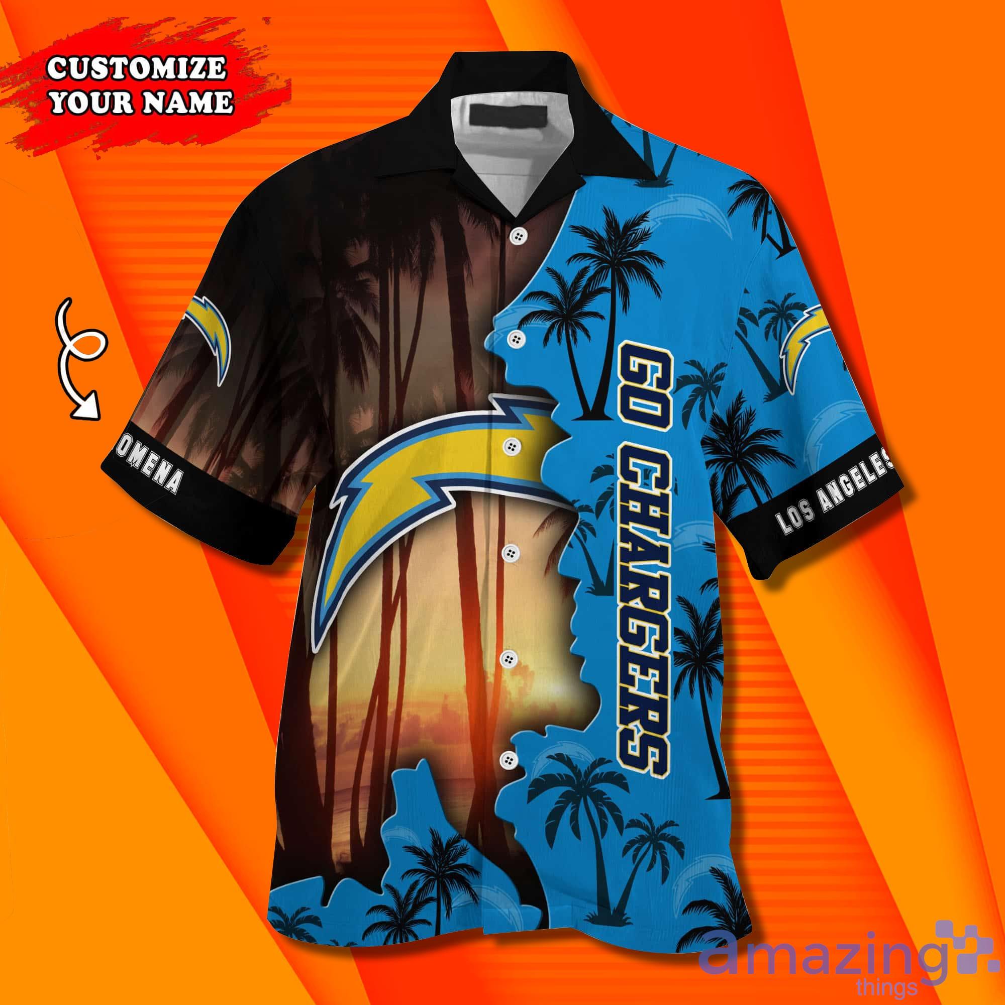 Los Angeles Chargers NF And Tropical Pattern Custom Name Hawaiian Shirt Details: