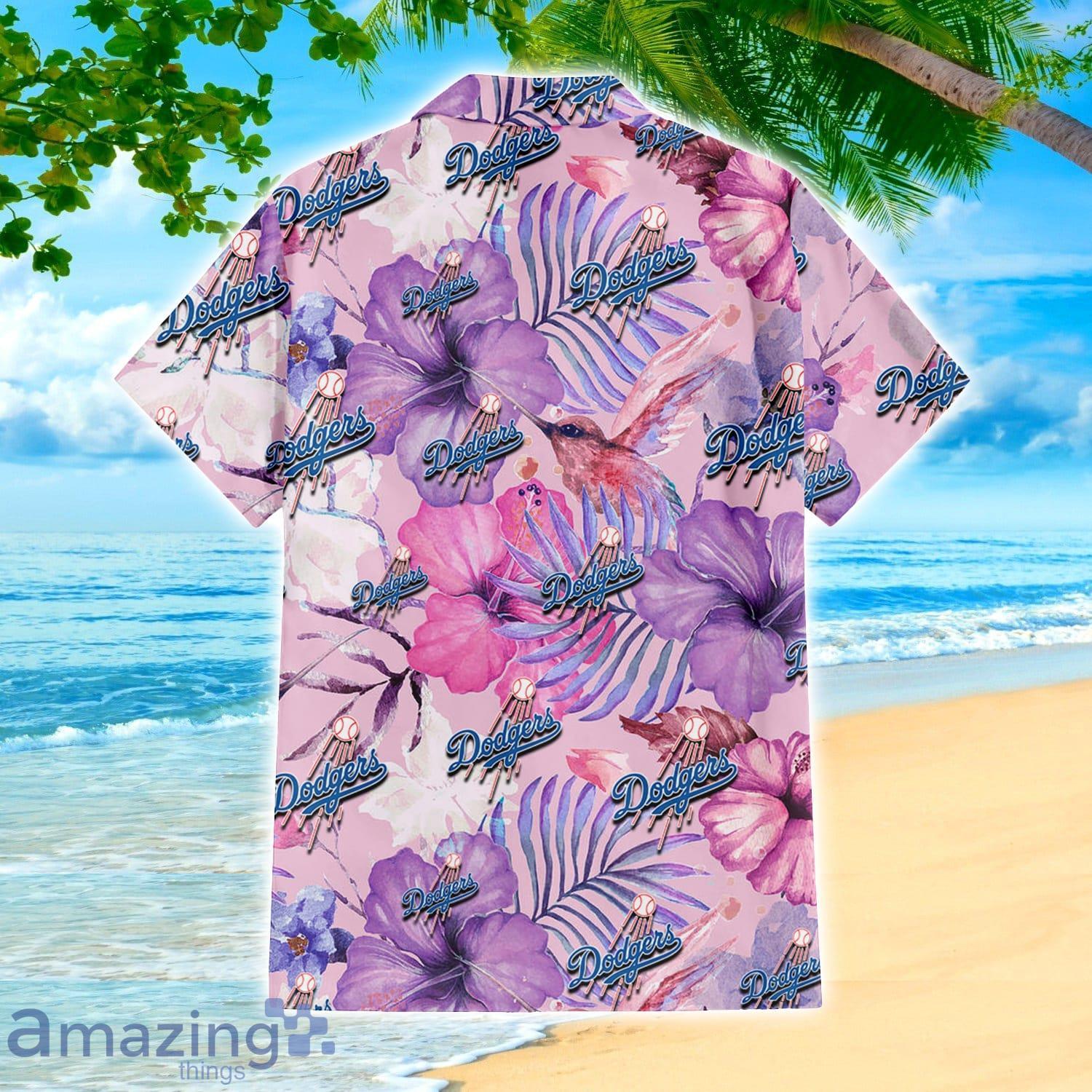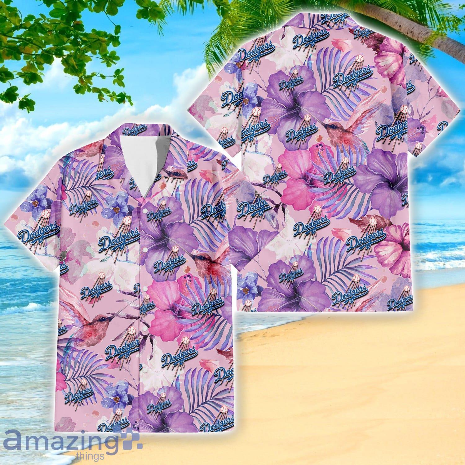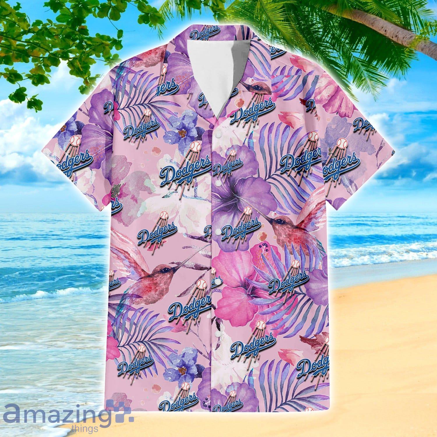 Los Angeles Dodgers White Purple Hibiscus Pink Hummingbird Pink Hawaiian Shirt For Fans Details: