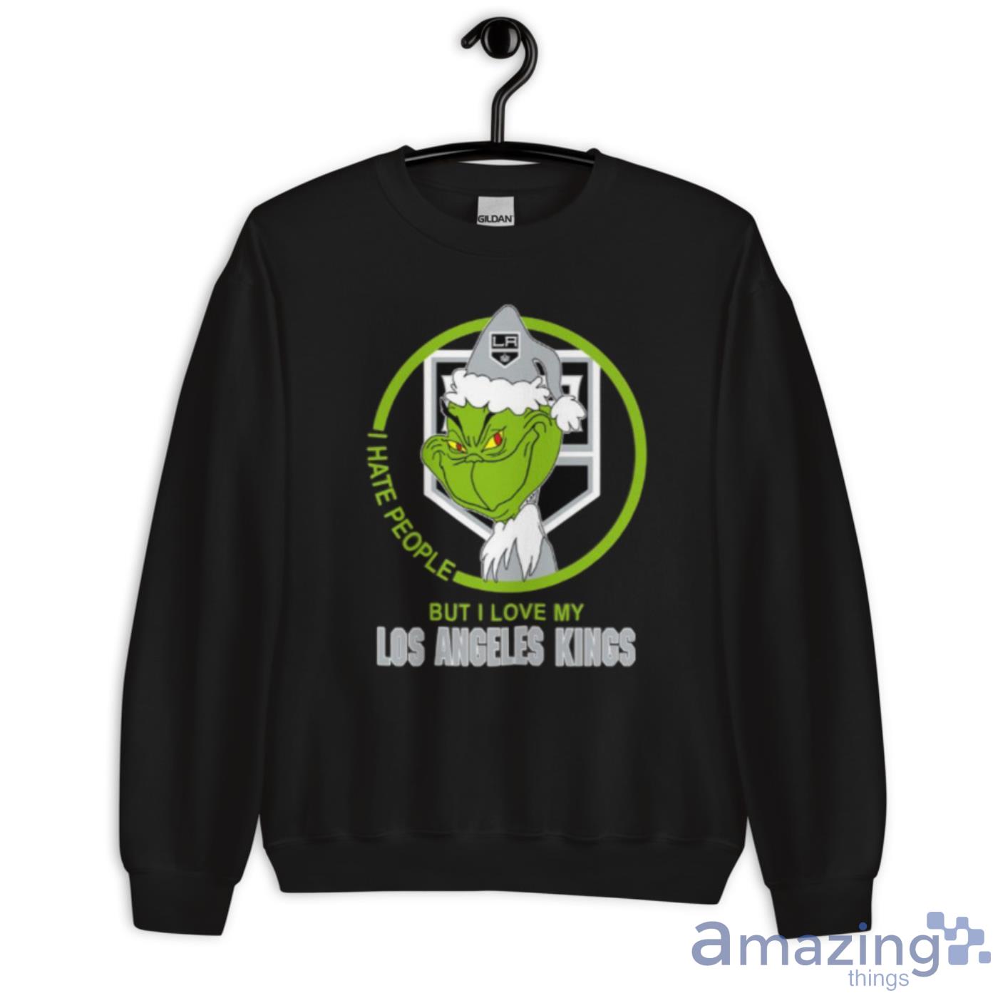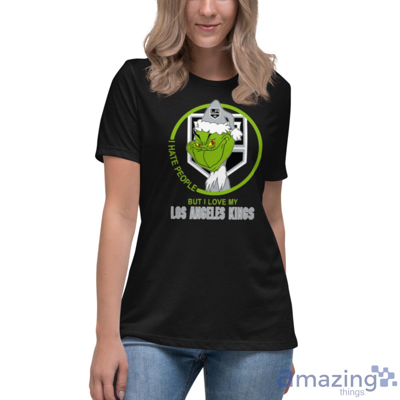 Los Angeles Kings NHL Christmas Grinch I Hate People But I Love My Favorite Hockey Team Shirt Details