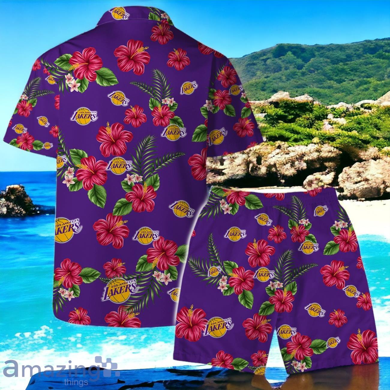 Los Angeles Lakers Team Logo Hawaiian Shirt And Short Floral Pattern