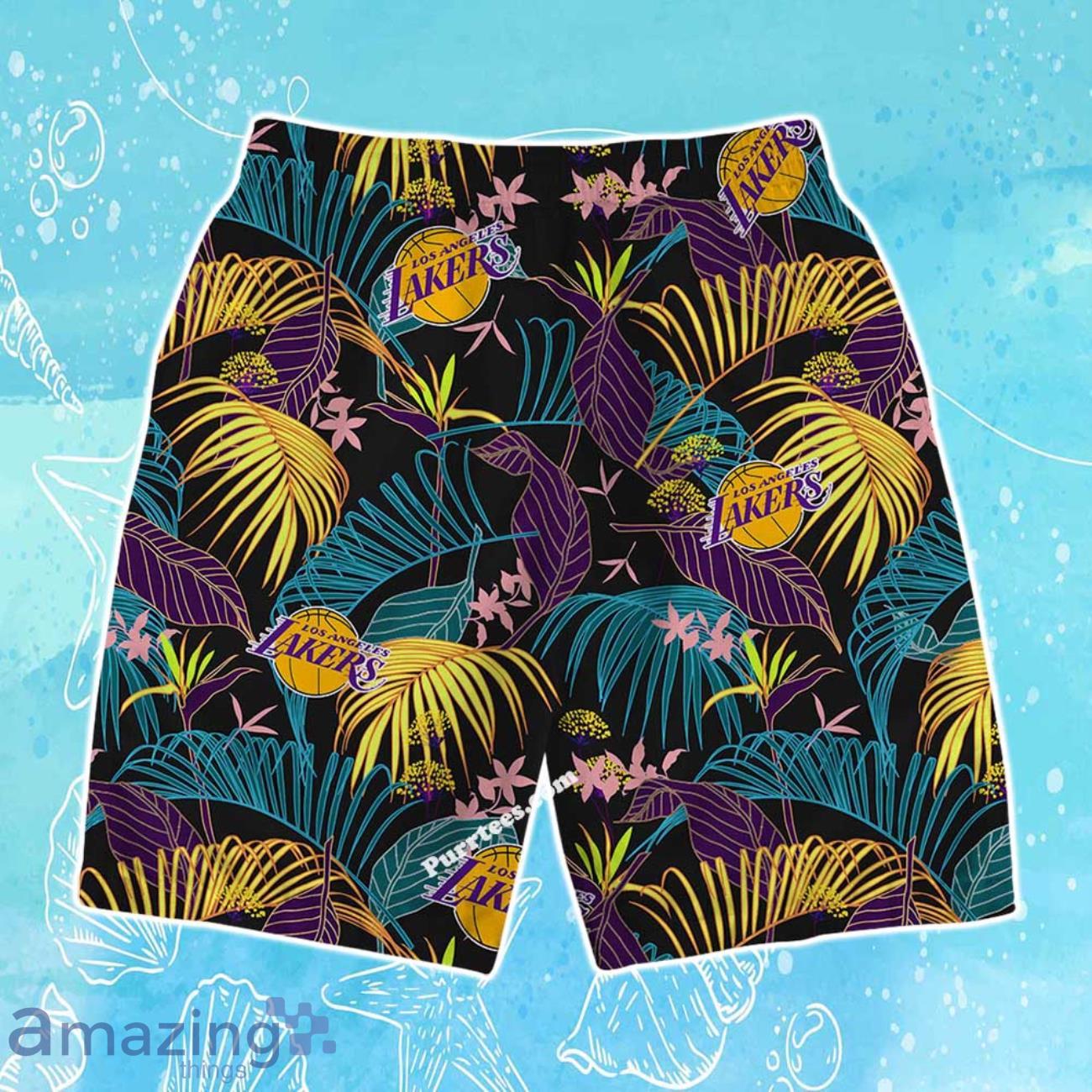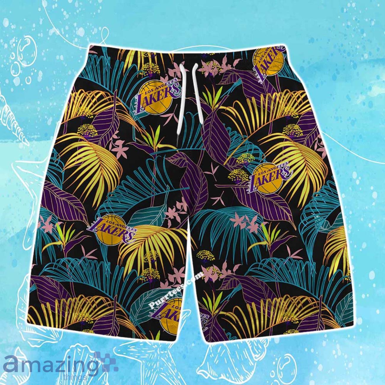 Los Angeles Lakers Team Logo Pattern Aloha Colorful Hawaiian Shirt & Short Details: