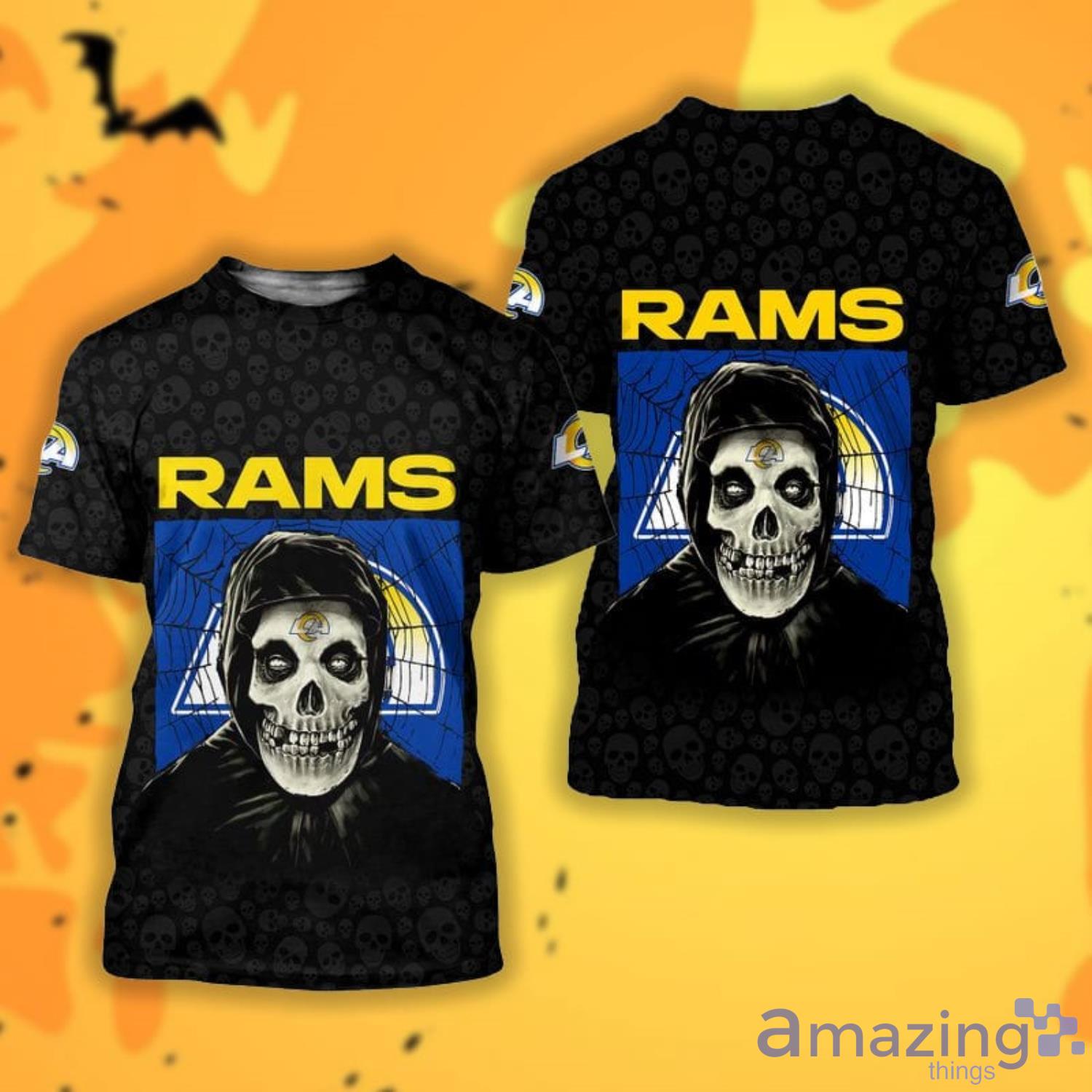 Perfect design for holiday. Get yours this shirt or this is a cute item for your daddy, gift for your mom, and gift for friends on any occasion. buy a cute Los Angeles Rams Halloween Misfit 3D All Over Printed Shirts now.