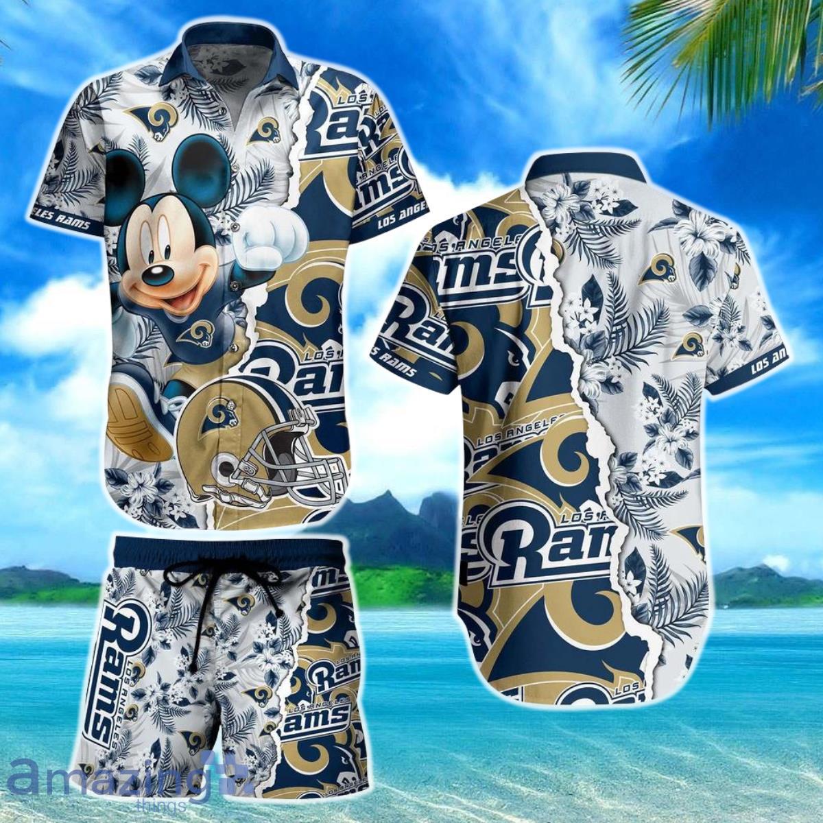 Los Angeles Rams NFL Hawaiian Shirt And Short Mickey Graphic Tropical 3D Printed Gift For Men Women Details: