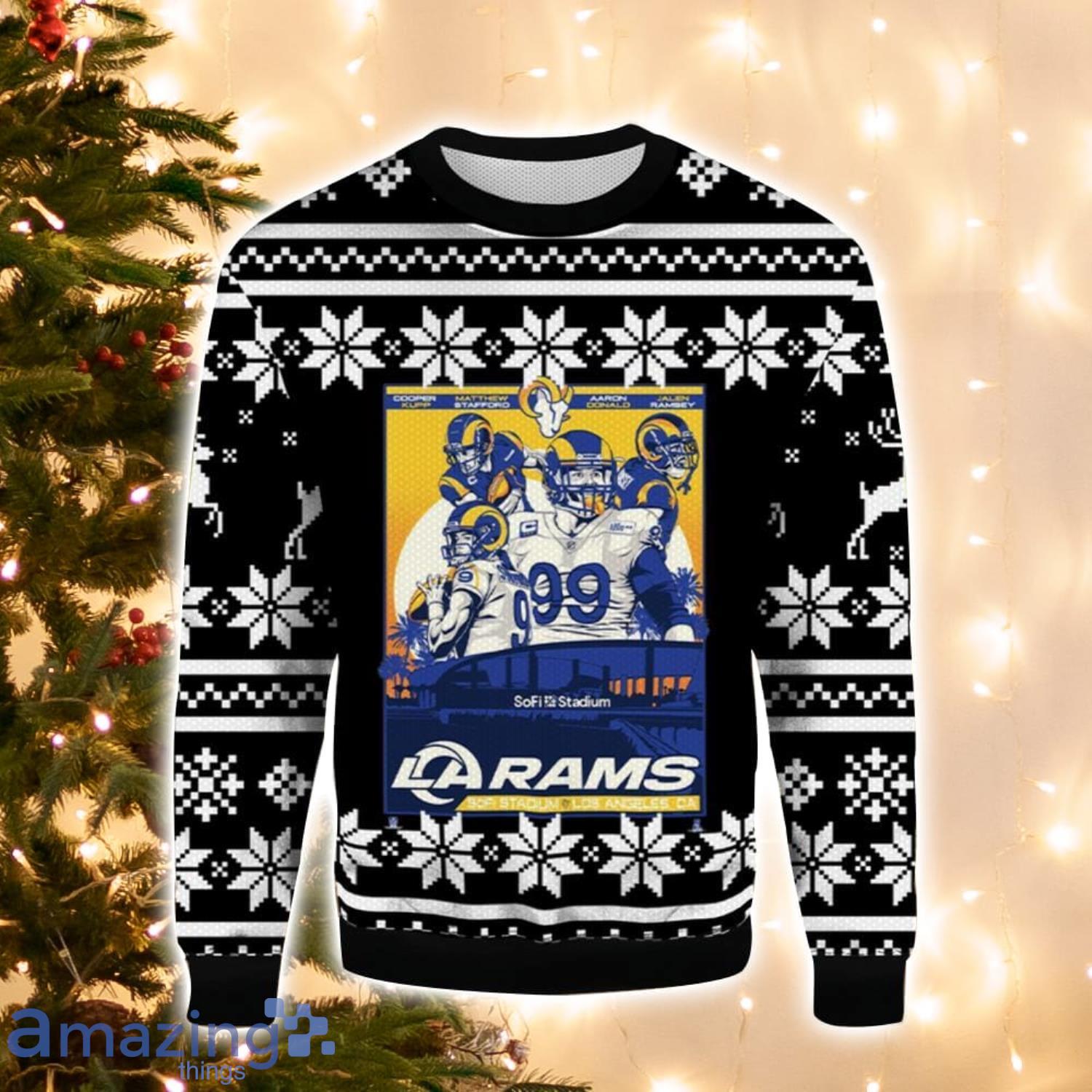 Get into the holiday spirit with our Los Angeles Rams Player Christmas Gift Ugly Christmas Sweater! Perfect for men and women, this festive sweater features your favorite team’s logo and colors, making it the ideal gift for any Rams fan. Stay warm and cozy while showing off your team pride during the holiday season. Add a touch of sporty style to your Christmas wardrobe with this unique and fun sweater. Make a statement at your next holiday party or game day gathering with our Los Angeles Rams Player Christmas Gift Ugly Christmas Sweater!