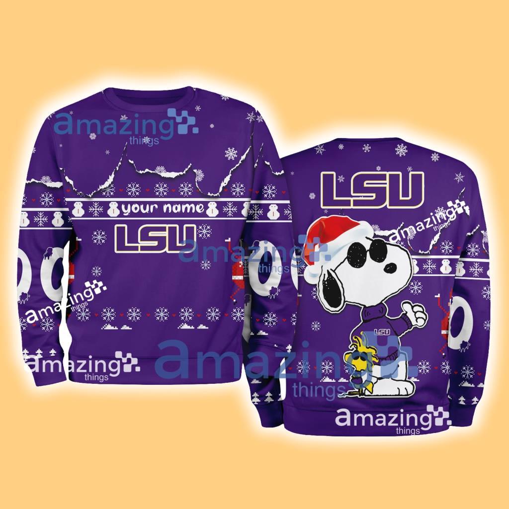Some of the Louisiana State NCAA Snoopy and Woodstock Cute Personalized Number Christmas Ugly Sweater New Gift Limited Edition photos