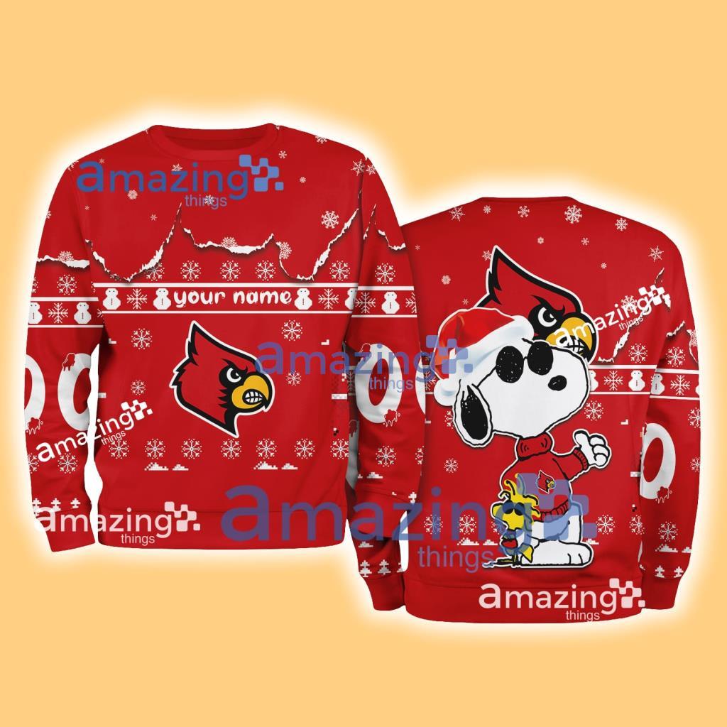 Louisville Cardinals NCAA Snoopy and Woodstock Cute Personalized Number Christmas Ugly Sweater New Gift Limited Edition Information