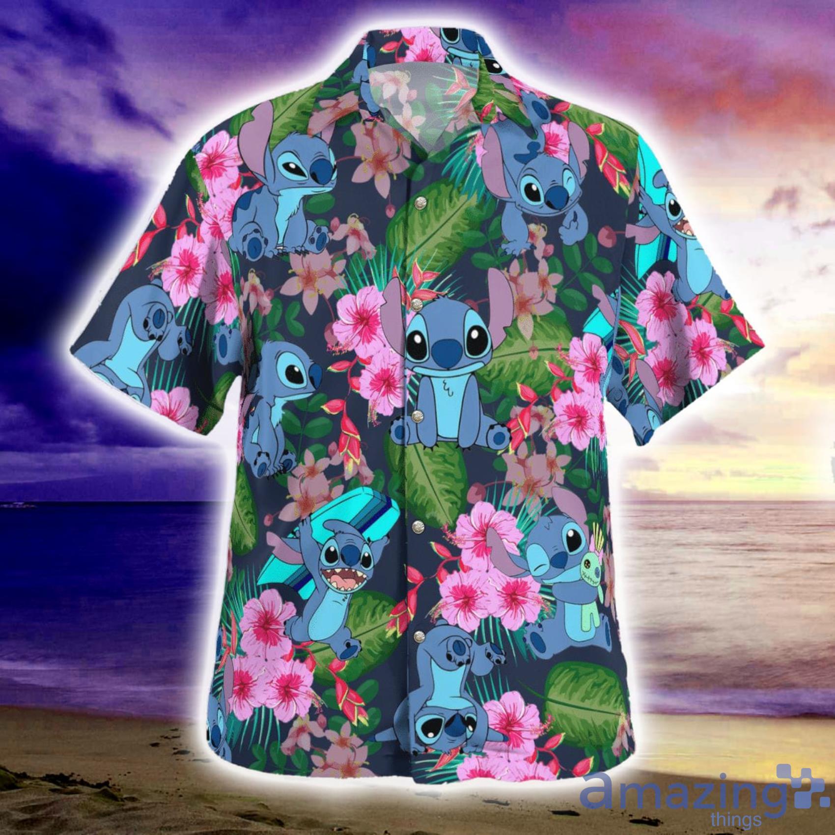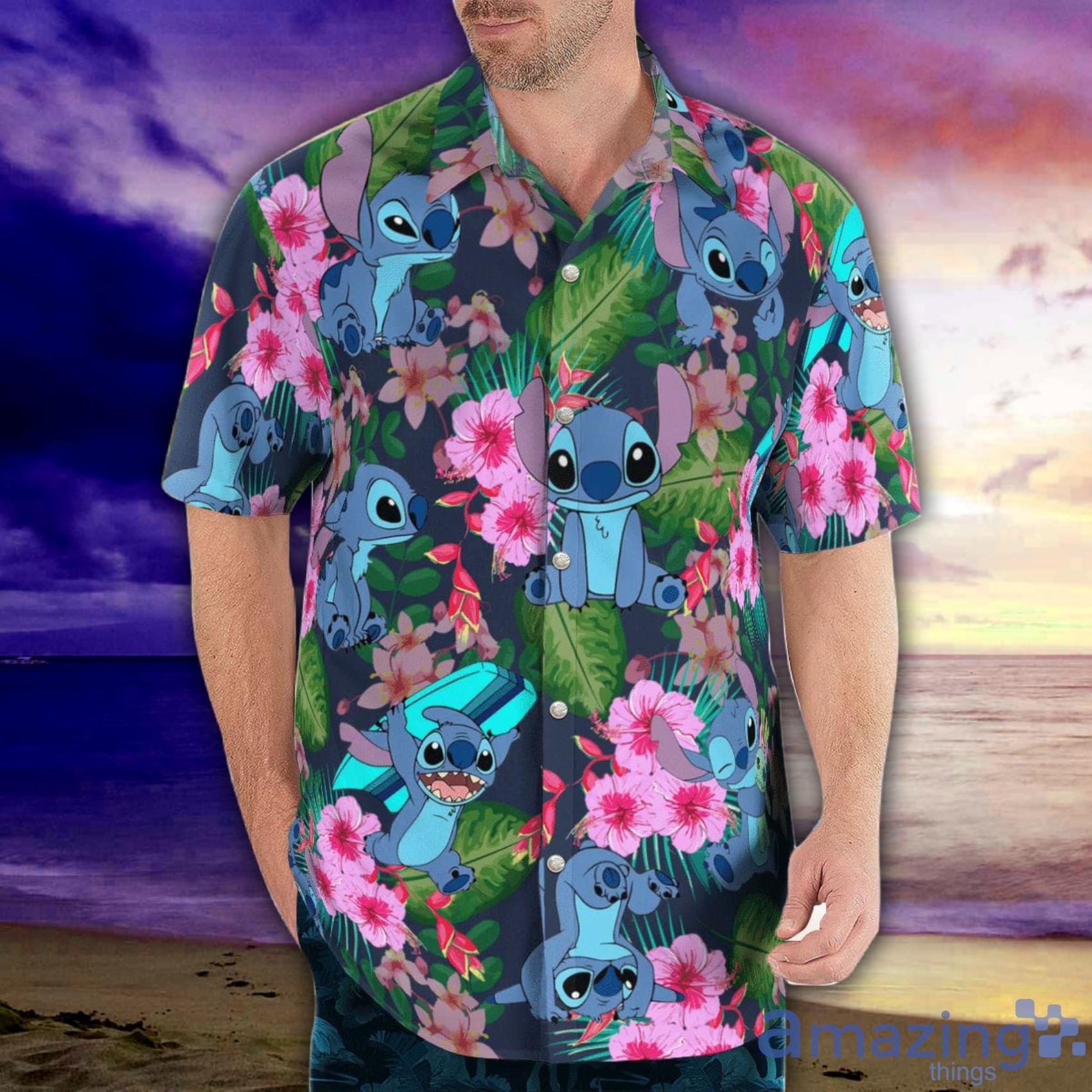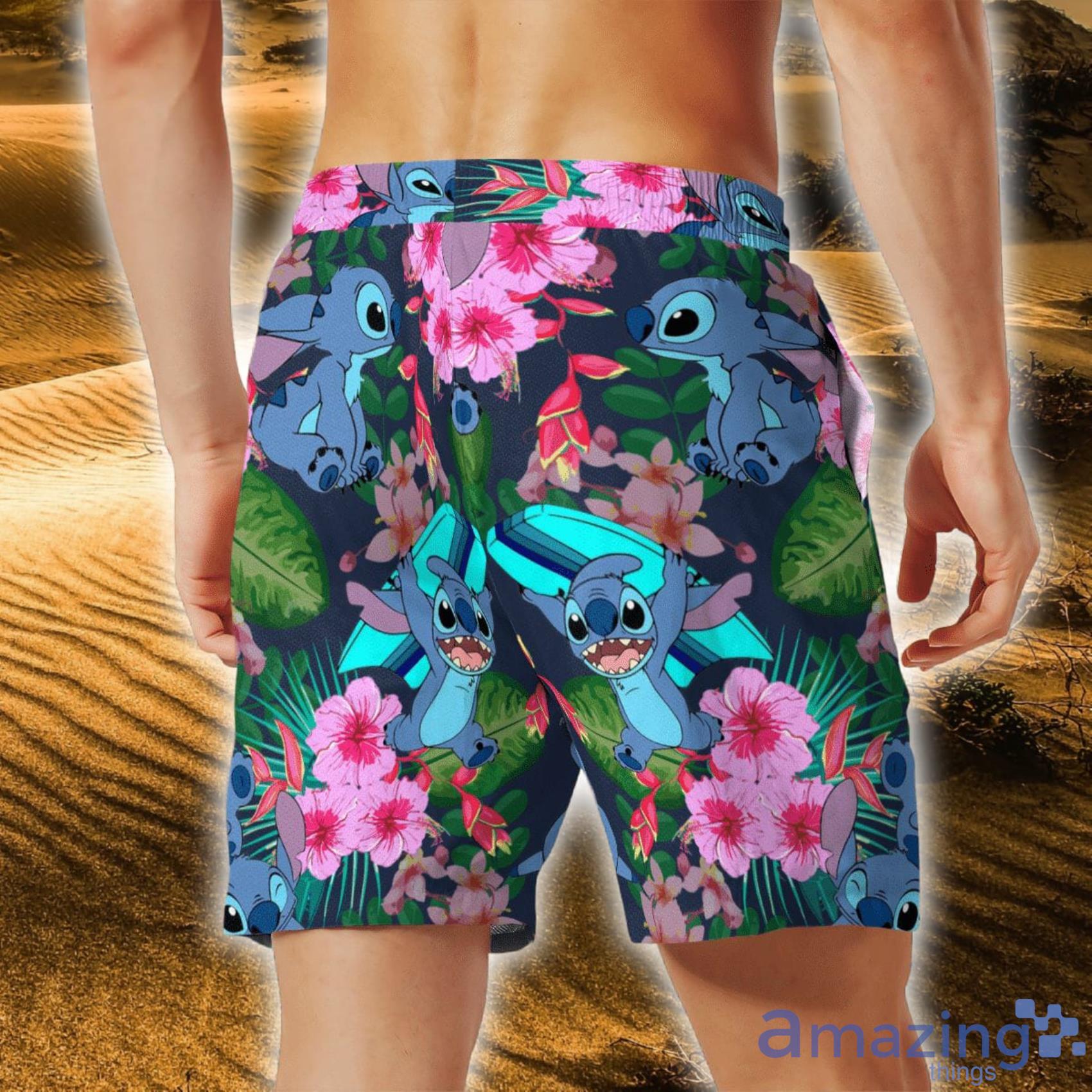 Lovely Stitch And Pink Tropical Flowers Watercolor Art Hawaiian Shirt & Beach Short