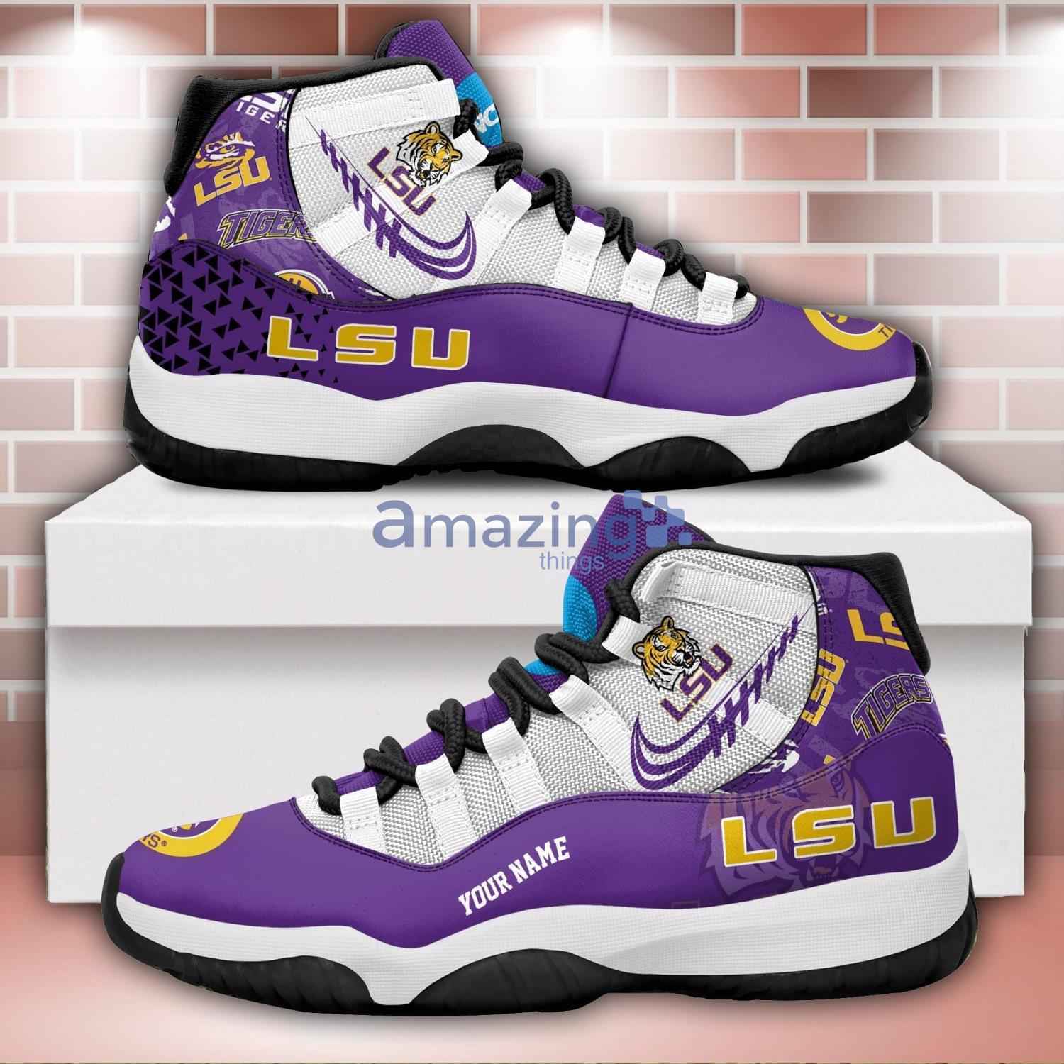 Some of the LSU Tigers Air Jordan 11 Sneakers Custom Name Sport Team Shoes For Men And Women photos