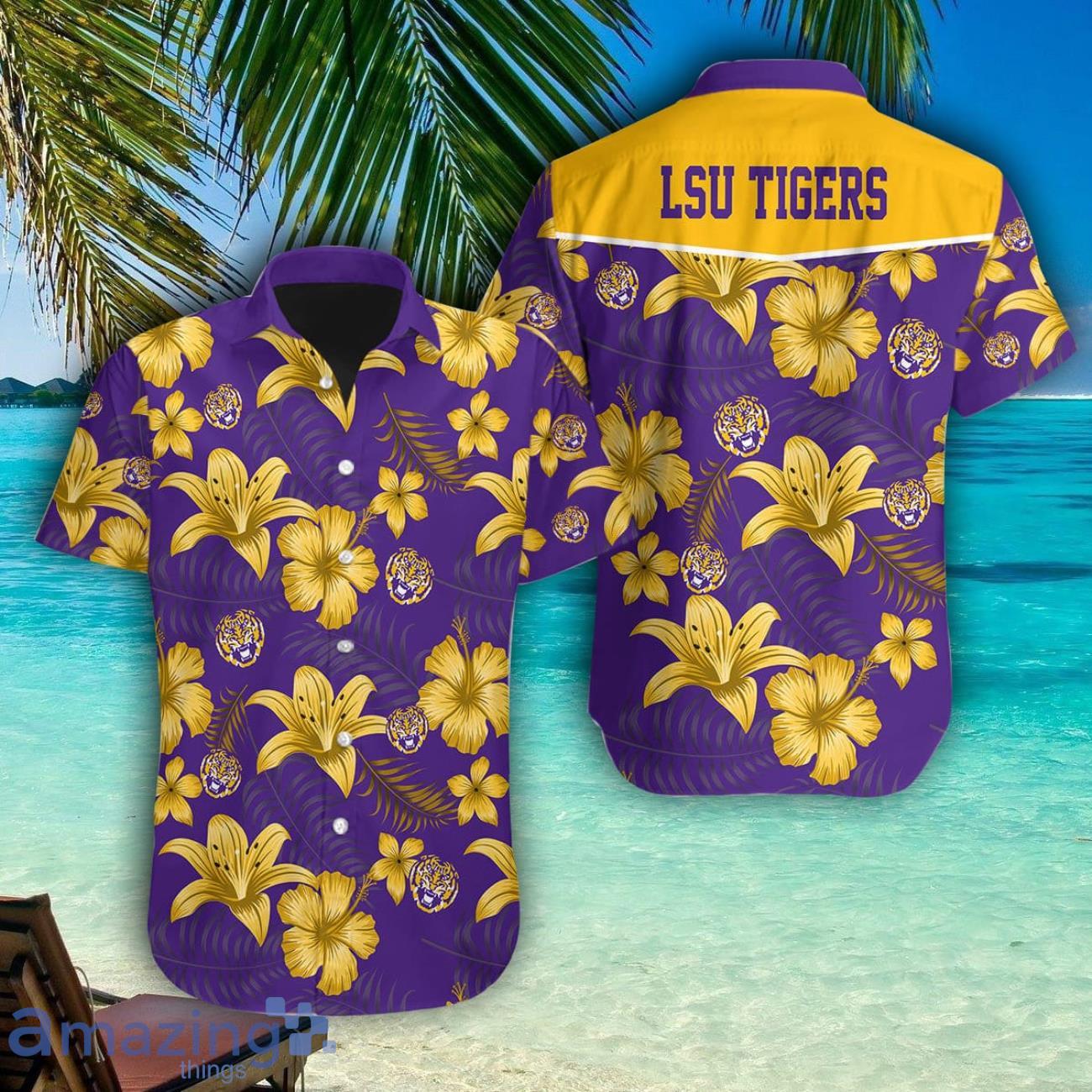 LSU Tigers Lily And Hibicus Flower Pattern Tropical Hawaiian Shirt Men Women Beach Shirt Details: