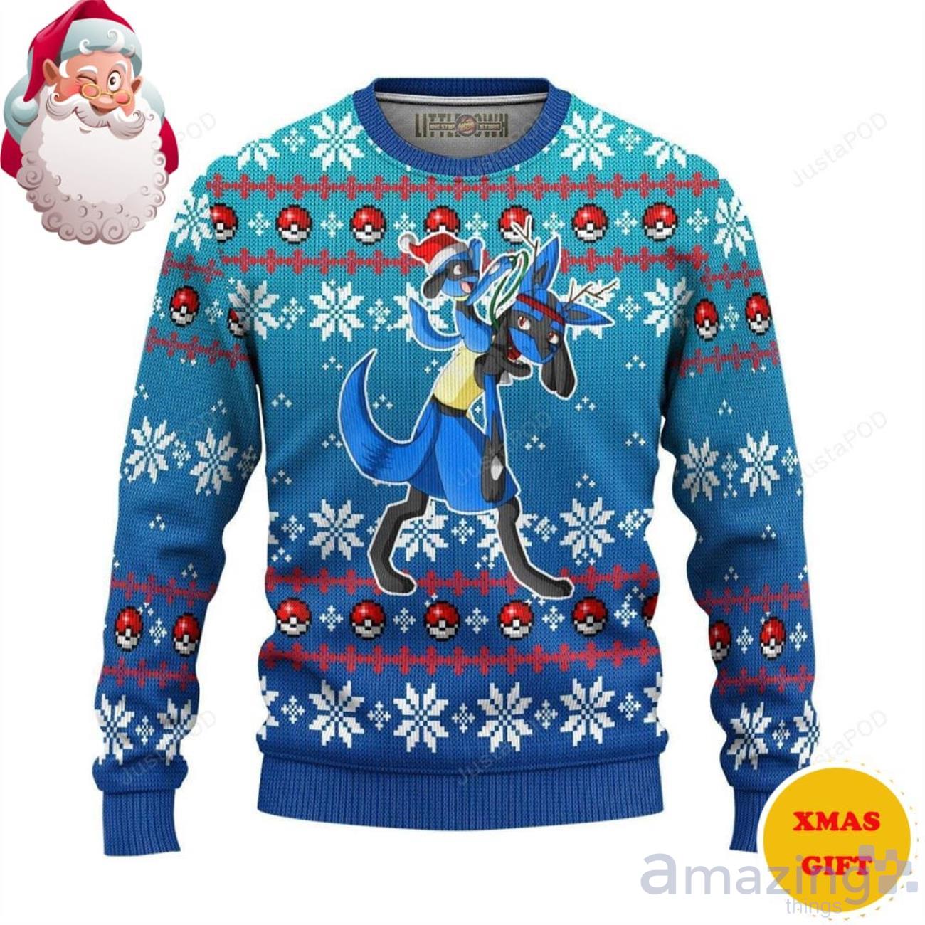Some of the Lucario Pokemon Christmas AOP Sweater photos