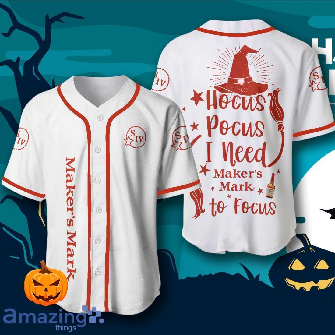 Get into the Halloween spirit with the Maker’s Mark Hocus Pocus Halloween Baseball Jersey! This spooky and stylish jersey is perfect for both men and women, and is sure to turn heads at any Halloween party or event. Made with high quality materials and featuring a unique design inspired by the iconic Hocus Pocus film, this jersey is a must-have for any Halloween enthusiast. Available in a variety of sizes, this jersey is comfortable, durable, and perfect for showing off your love for Halloween and Maker