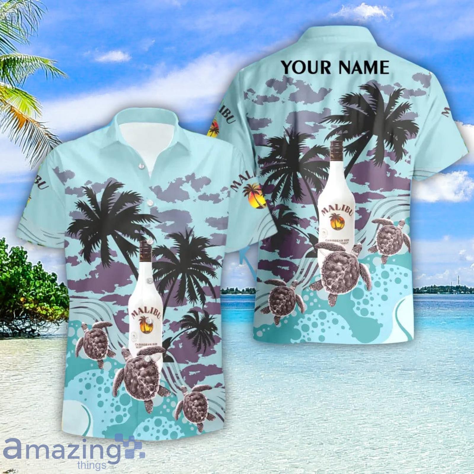 Malibu Rum Turtles Palm Tree Hawaiian Shirt And Shorts Custom Name Special Summer Gift