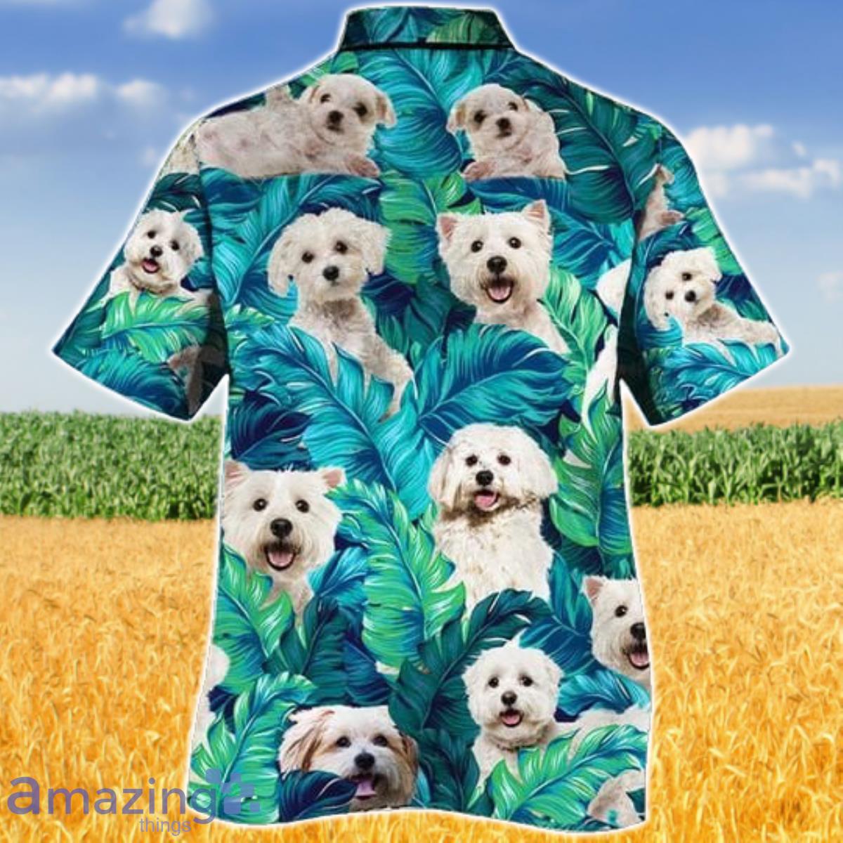 Crafted from premium quality fabric, this shirt provides a comfortable and breathable fit, making it ideal for both men and women. Its Hawaiian-inspired design features a playful mix of Maltese dog prints and tropical motifs, creating a unique and eye-catching look that is sure to turn heads wherever you go.