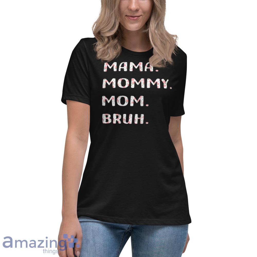 But what really sets this t-shirt apart is its hilarious and heartwarming message. Featuring the words “Mama Mommy Mom Bruh” in bold letters, this t-shirt is sure to bring a smile to your mom’s face and remind her just how much she means to you.