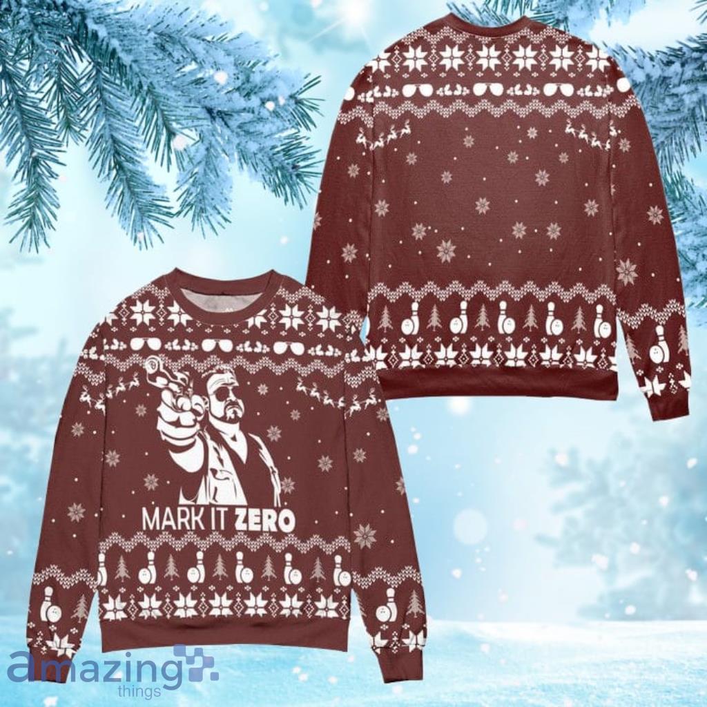 Crafted with utmost attention to detail, our sweater features a playful pine tree and snowflake pattern that will make you stand out from the crowd. The iconic “Mark It Zero” phrase adds a touch of whimsy, paying homage to The Big Lebowski and giving you an instant conversation starter wherever you go.