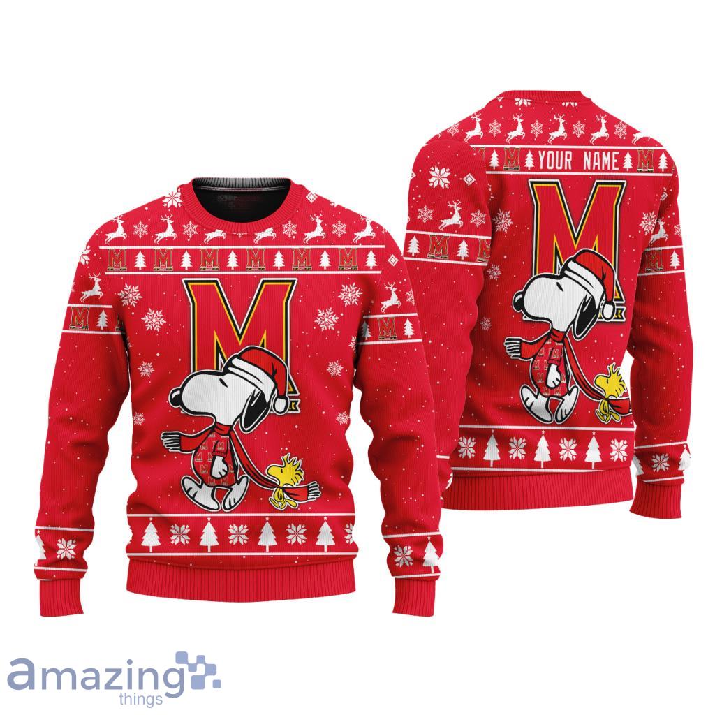Maryland Terrapins NCAA Football Snoopy And Woodstock Christmas Ugly Sweater 3D Information