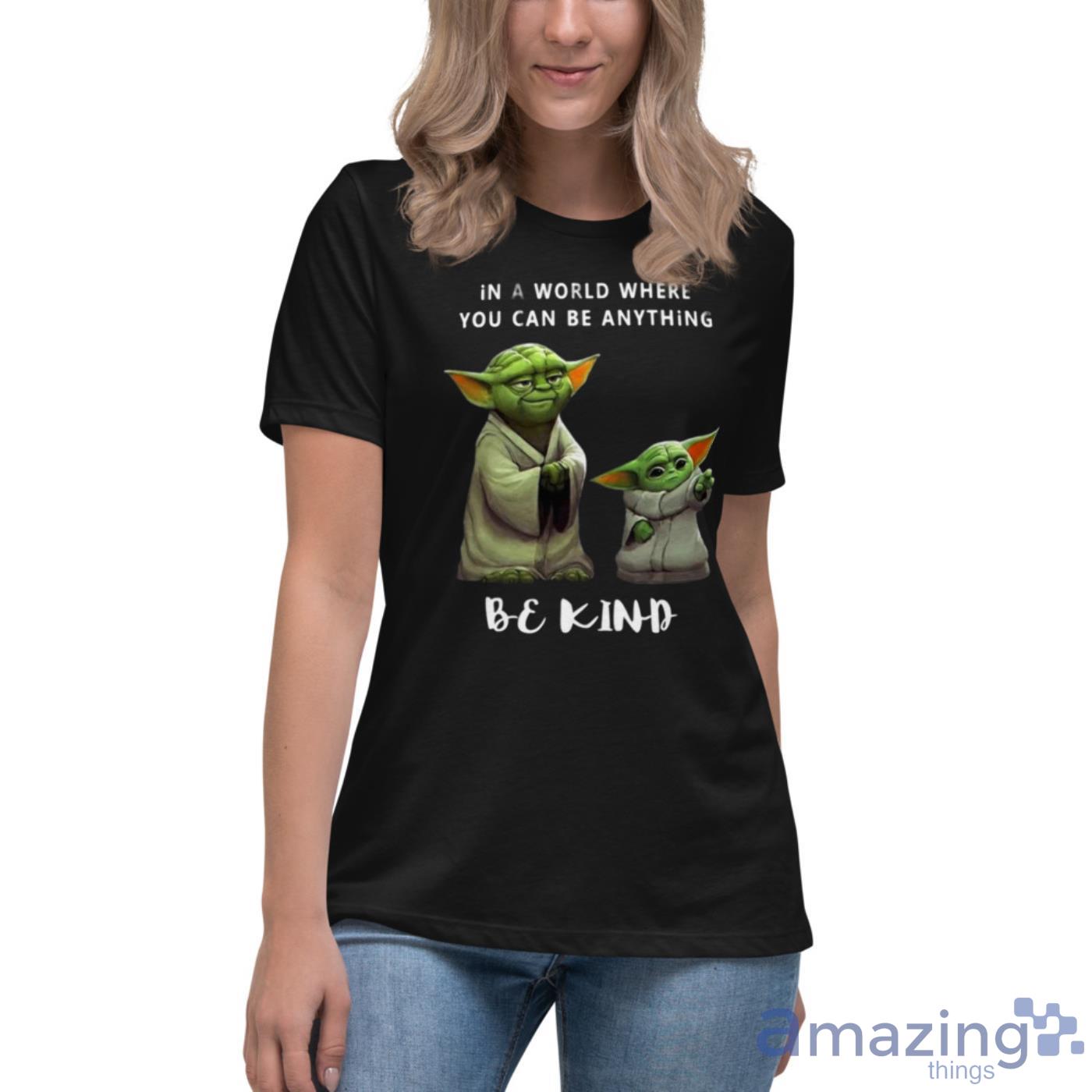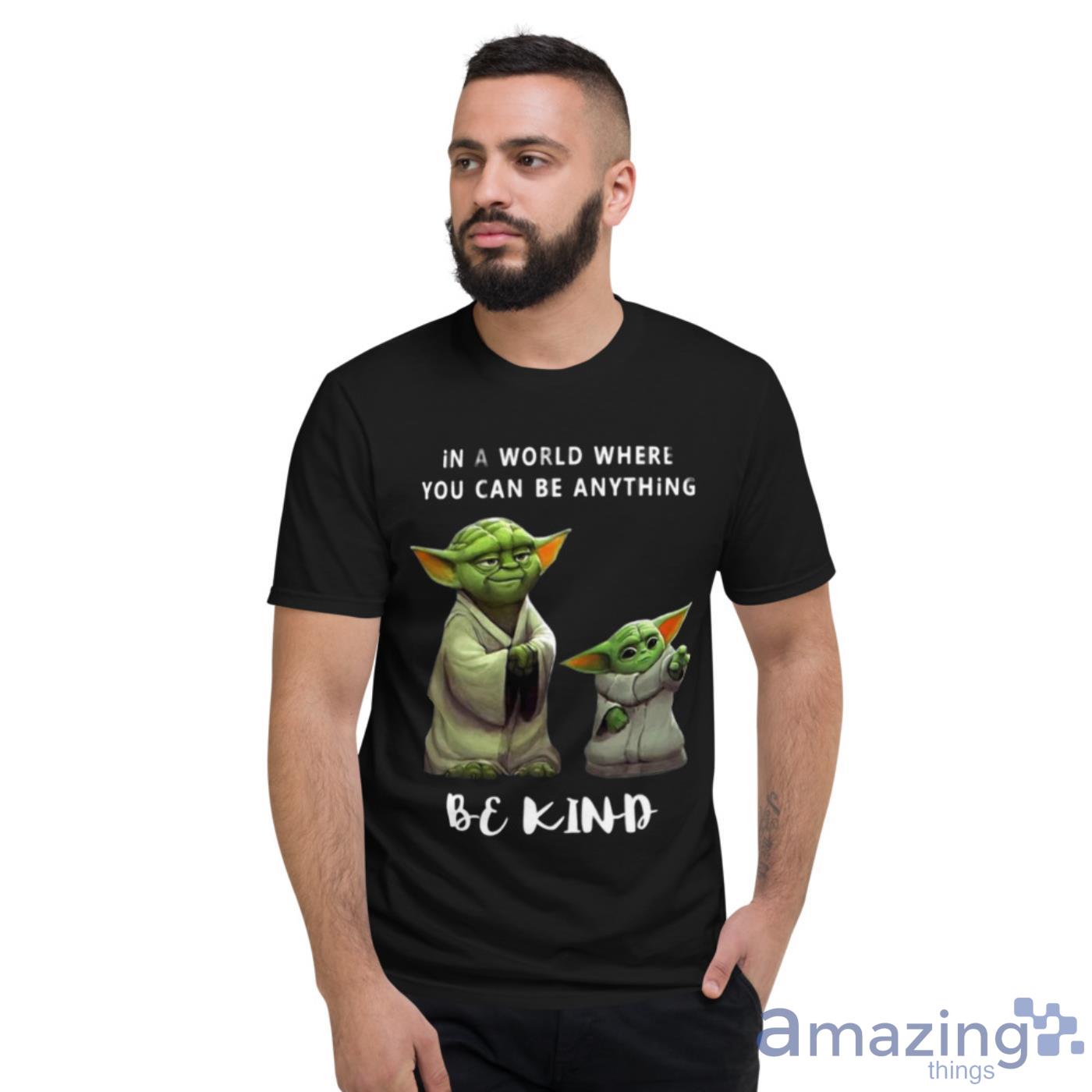 Master Yoda And Baby Yoda In A World Where You Can Be Anything Be Kind Shirt