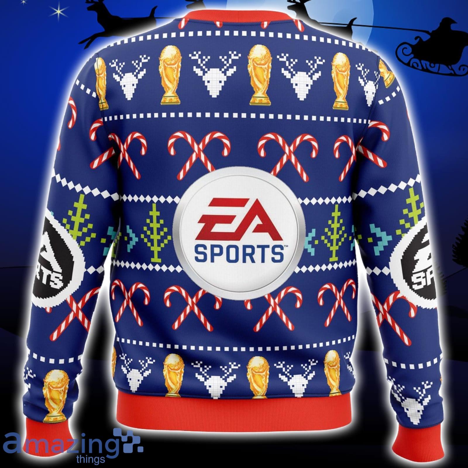 Spread the holiday spirit and show off your love for soccer and video games with our Mbappe EA Sports FIFA Xmas Ugly Christmas Sweater. Don’t miss out on this limited edition item – order yours today and celebrate Christmas in style!