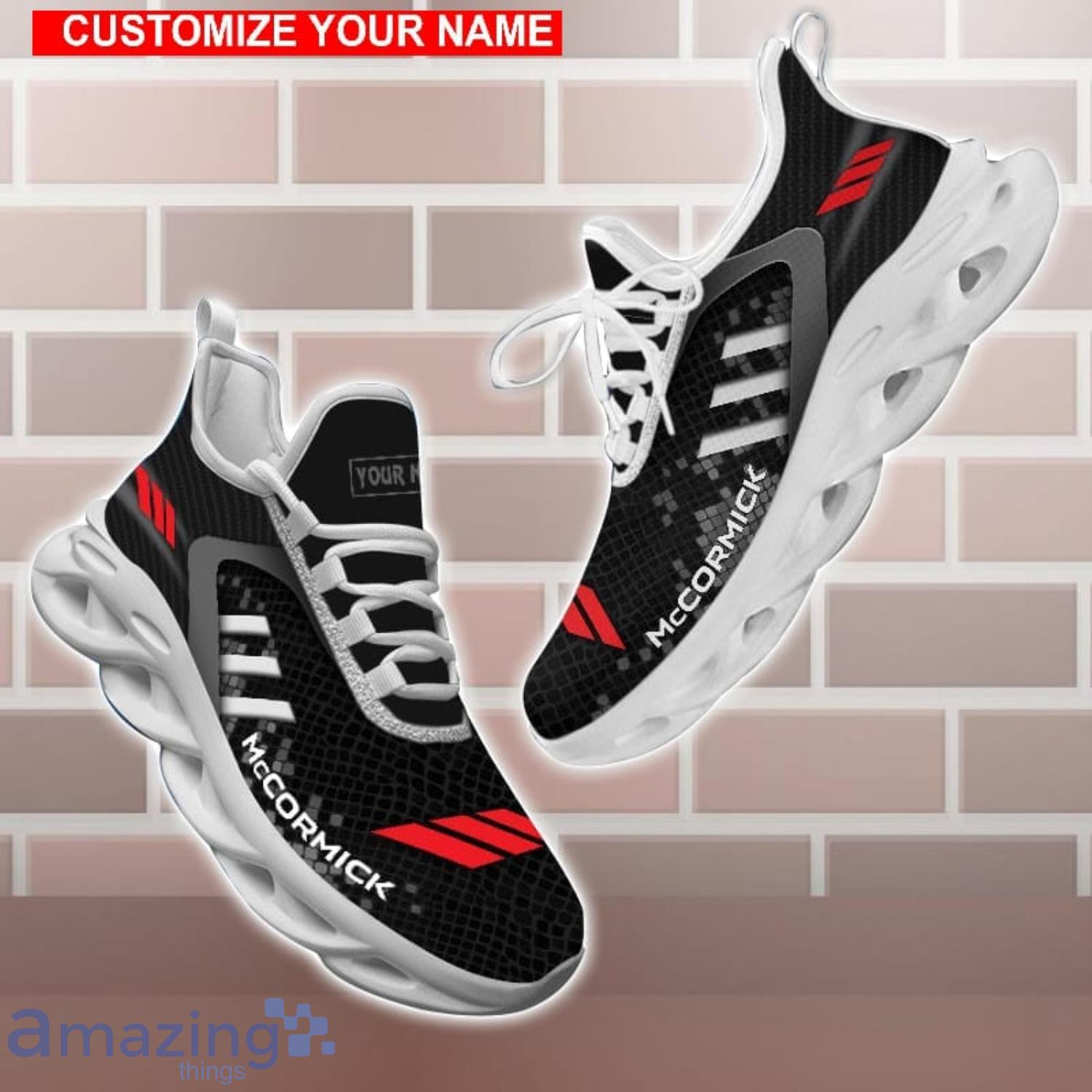 This McCormick Max Soul Shoes Style 2 Utra Running Sneakers Men Women Personalized Name Gift is a breathable, lightweight, and comfortable casual outdoor shoe that has a unique design. It is made of a mesh fabric which makes it sweat absorbent and breathable, while the rubber bottom ensures traction, comfort, and durability. It is available in two colors: black or white sole. There are two styles of shoelace holes so you can choose your preference.