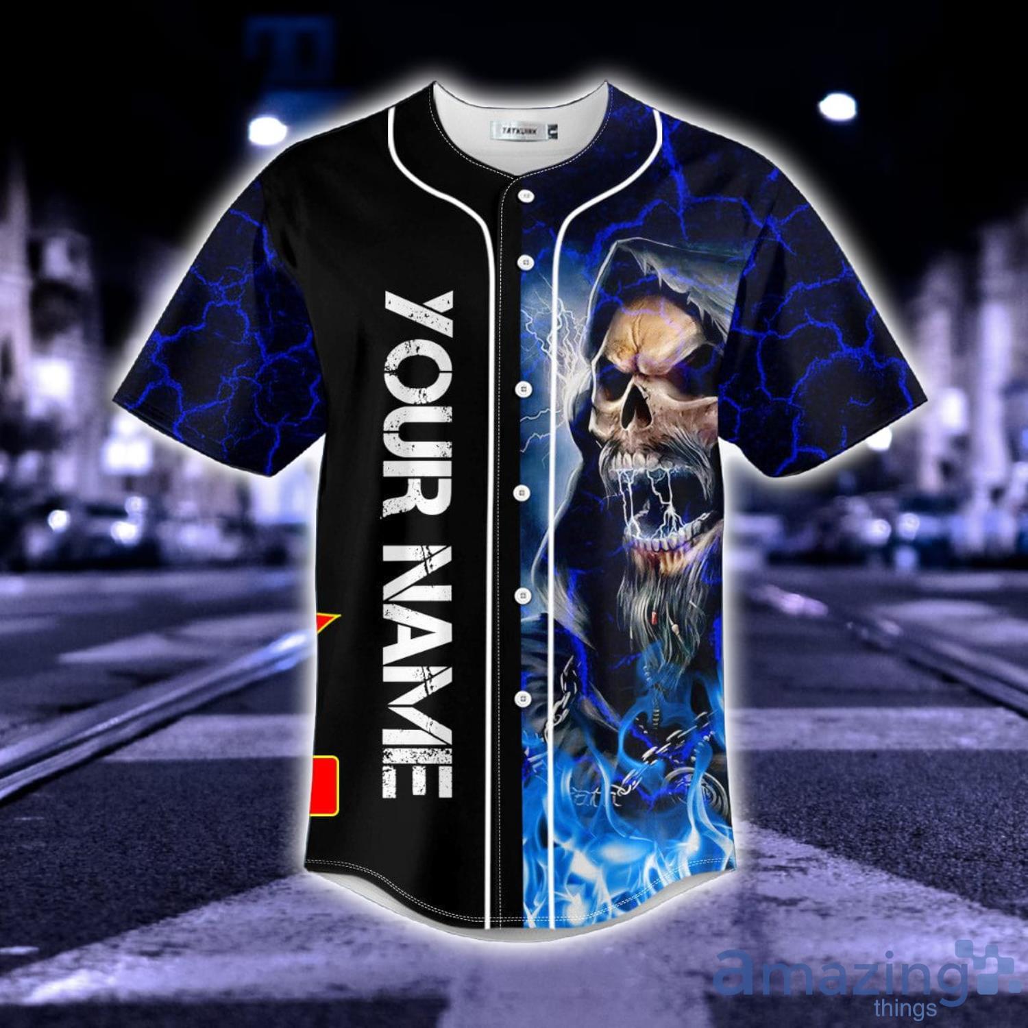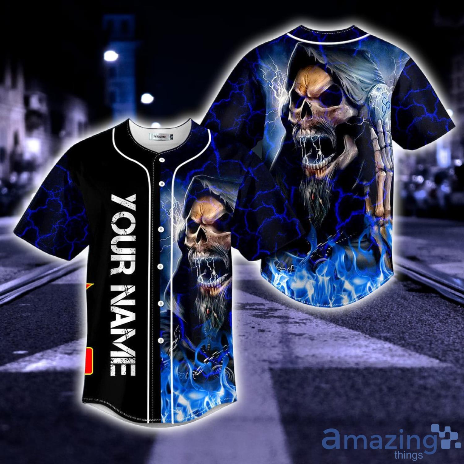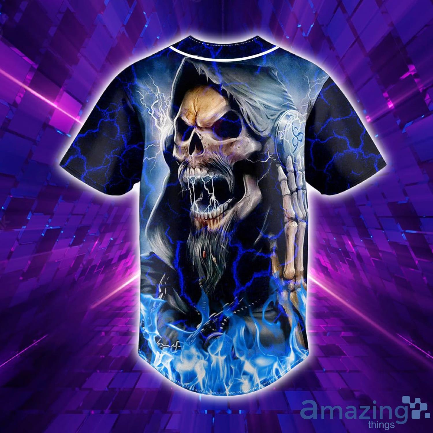 Melodic Death Metal Grim Reaper Blue Fire Skull All Over Print AOP Baseball Jersey For Men And Women