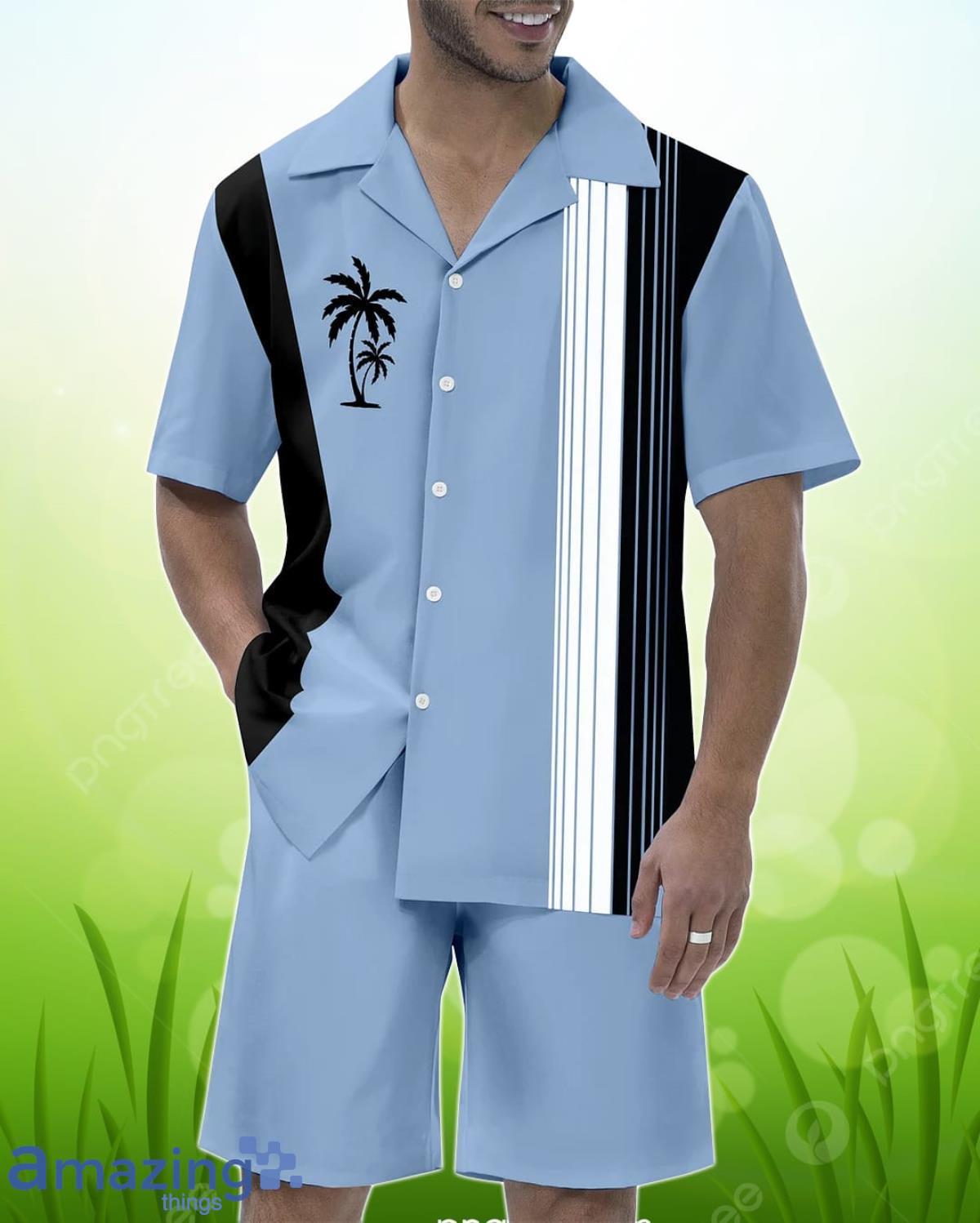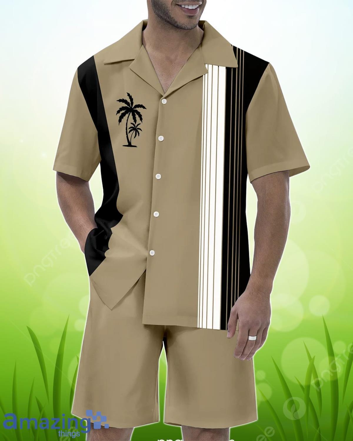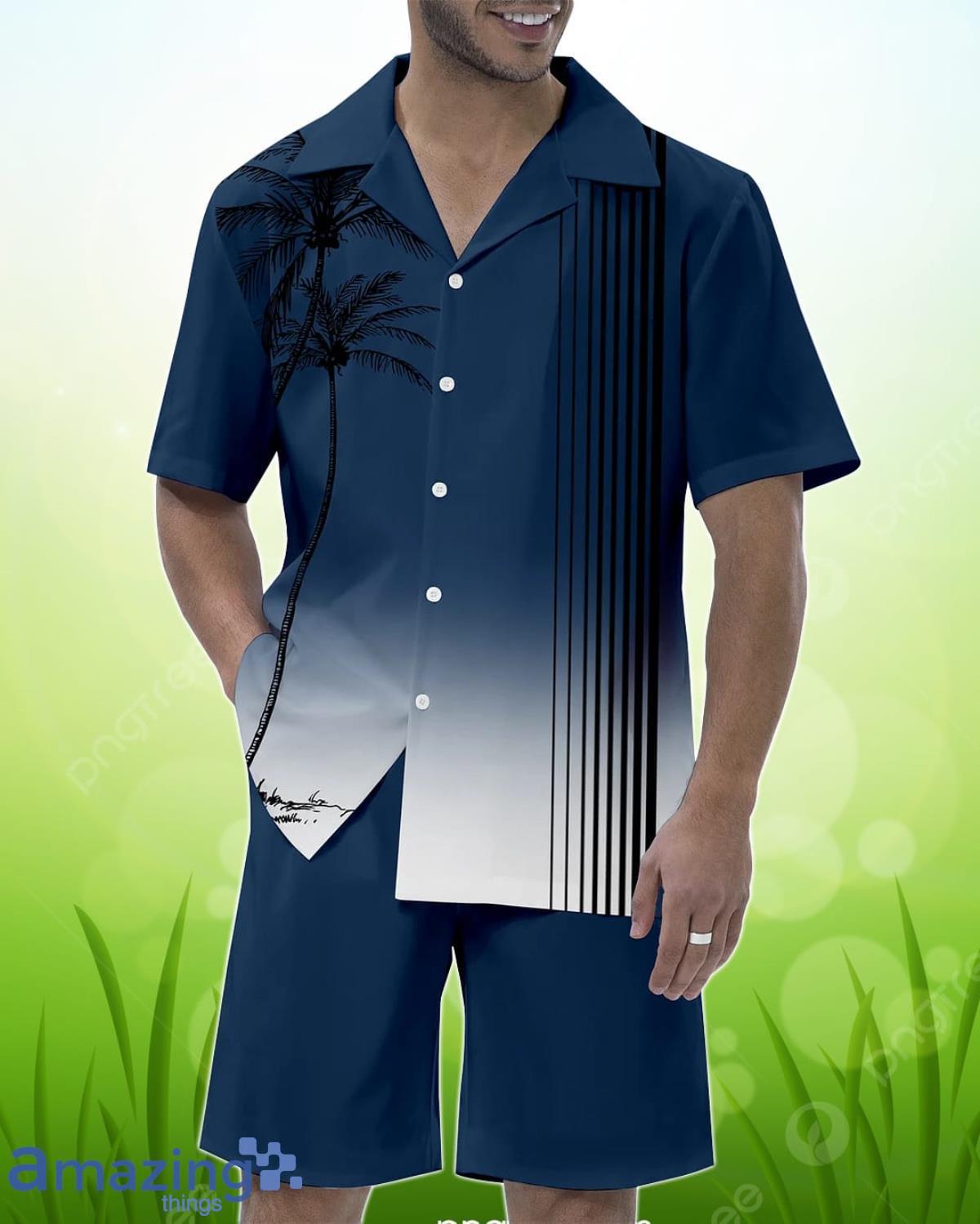 Men’s Casual Vacation Hawaiian Cuban Collar Short Sleeve Shirt Set Details:
