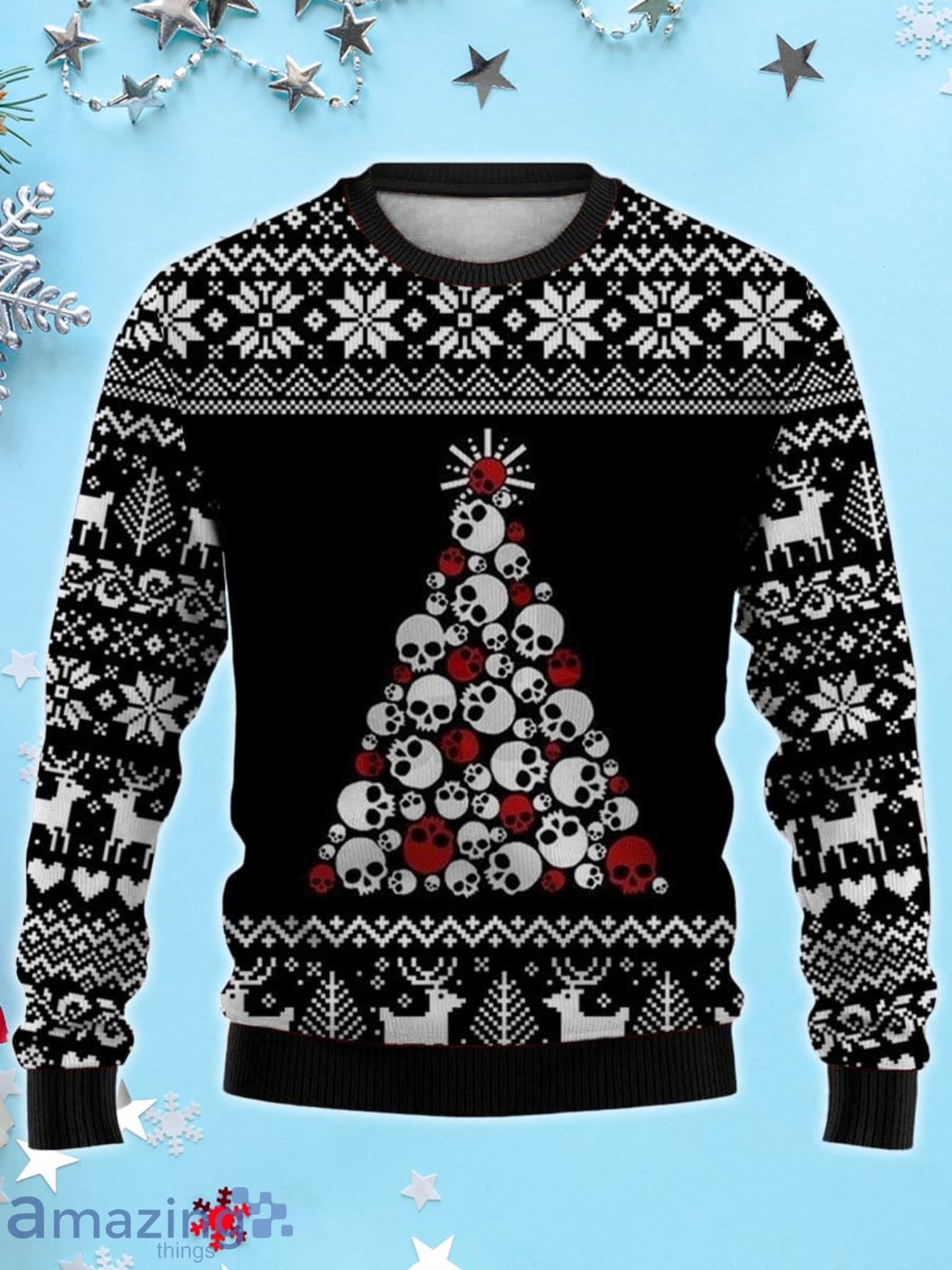 Men’s Skull Christmas Print 3D Ugly Christmas Sweater, Xmas Gift For Everyone