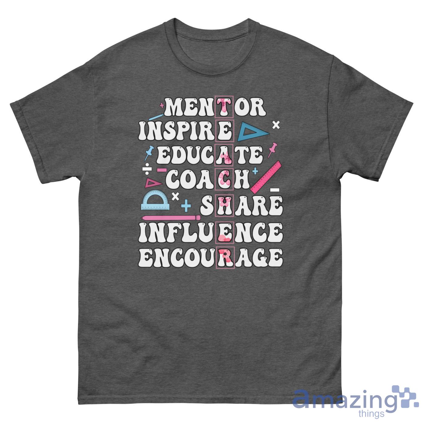 Mentor Inspire Educate Coach Share Influence Encourage Teacher Shirt Details
