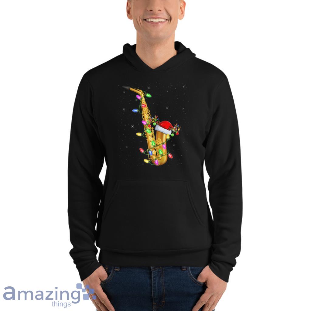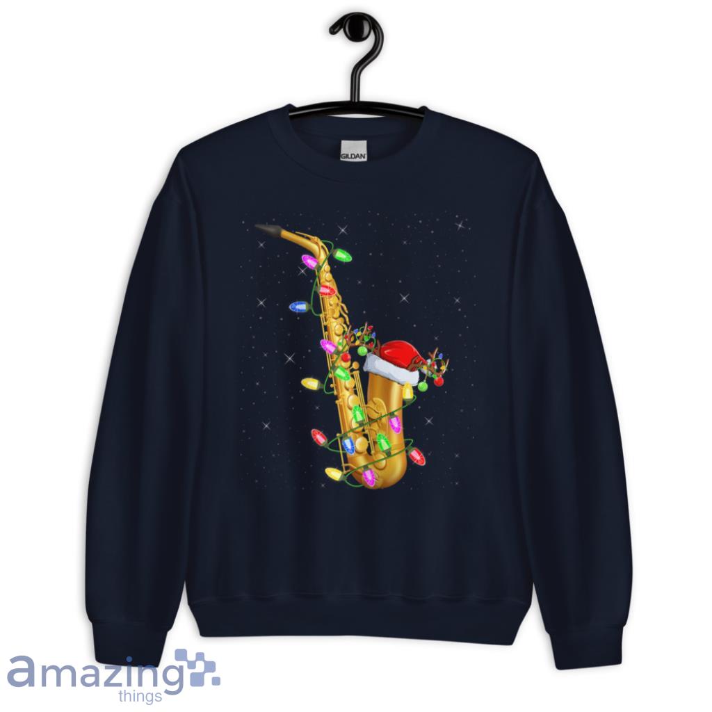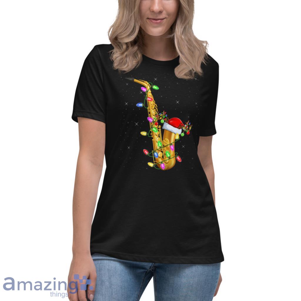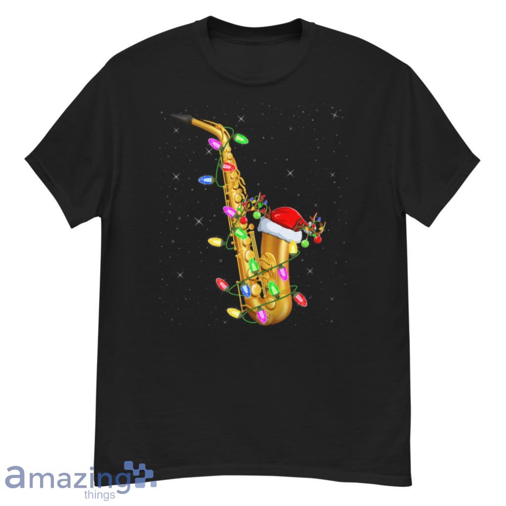 Saxophone Music Lover Xmas Lights Santa Saxophone Christmas Shirt