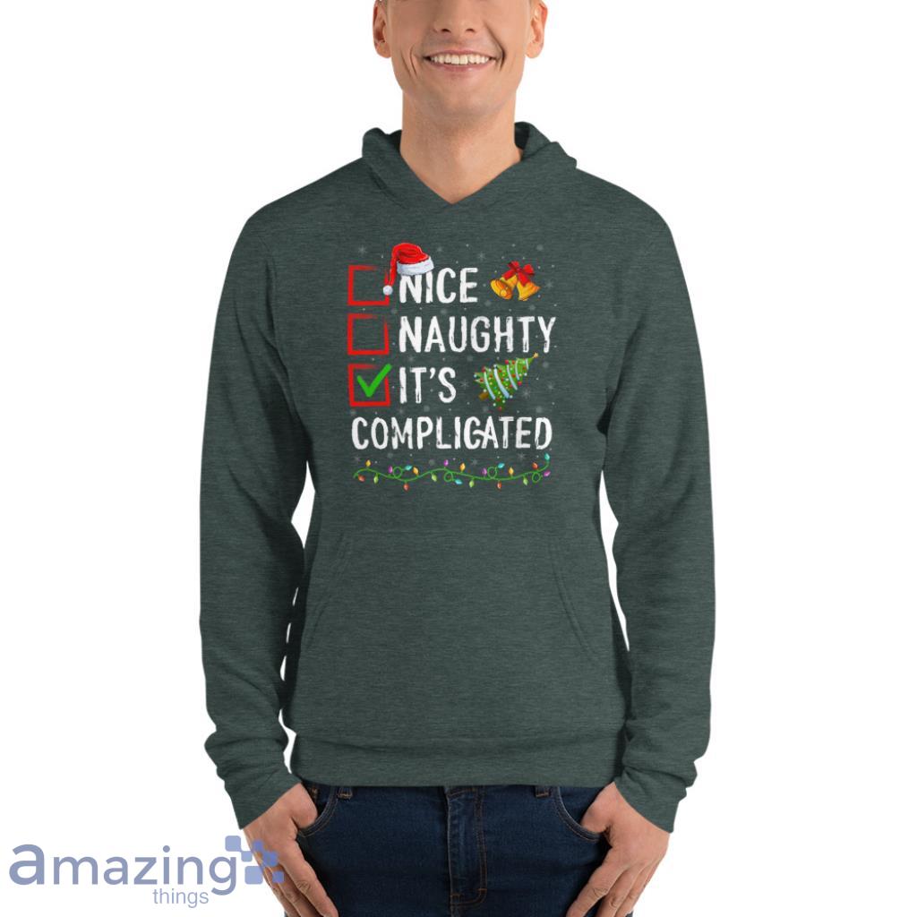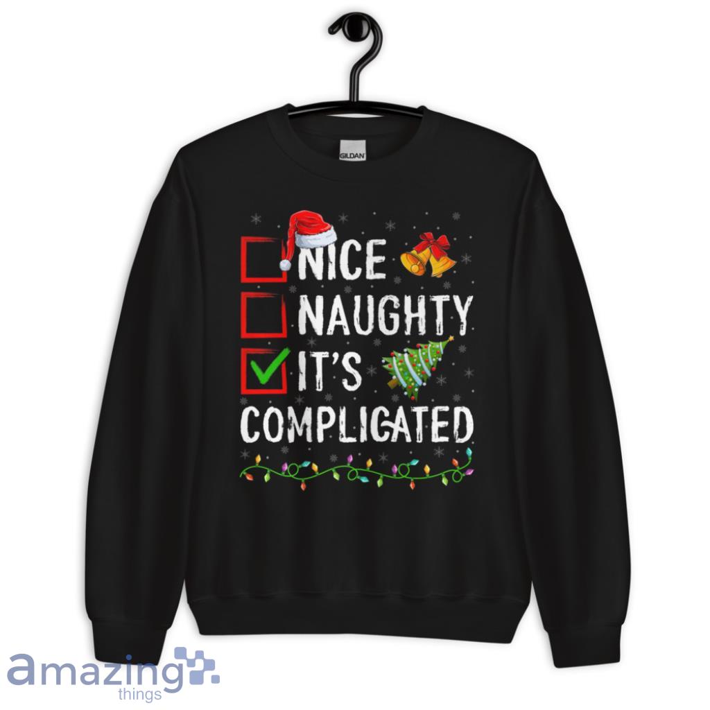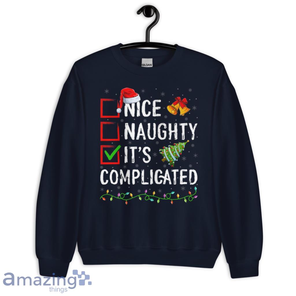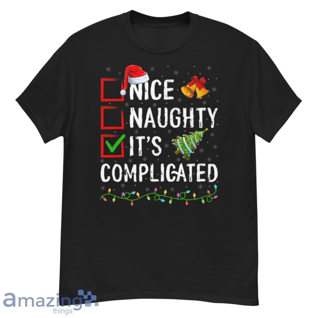 Looking for a fun and unique Christmas shirt? This "Nice Naughty It's Complicated" shirt is perfect for you! Made of a high quality, super soft material, it's sure to be a hit at your next holiday party. The shirt is a great conversation starter and is sure to get a laugh. Order yours today and be the hit of the party!