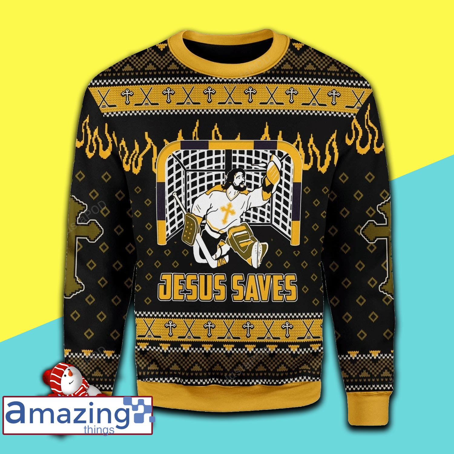 Merry Christmas Gearhomies Unisex Jesus Saves Hockey Ugly Christmas Sweater