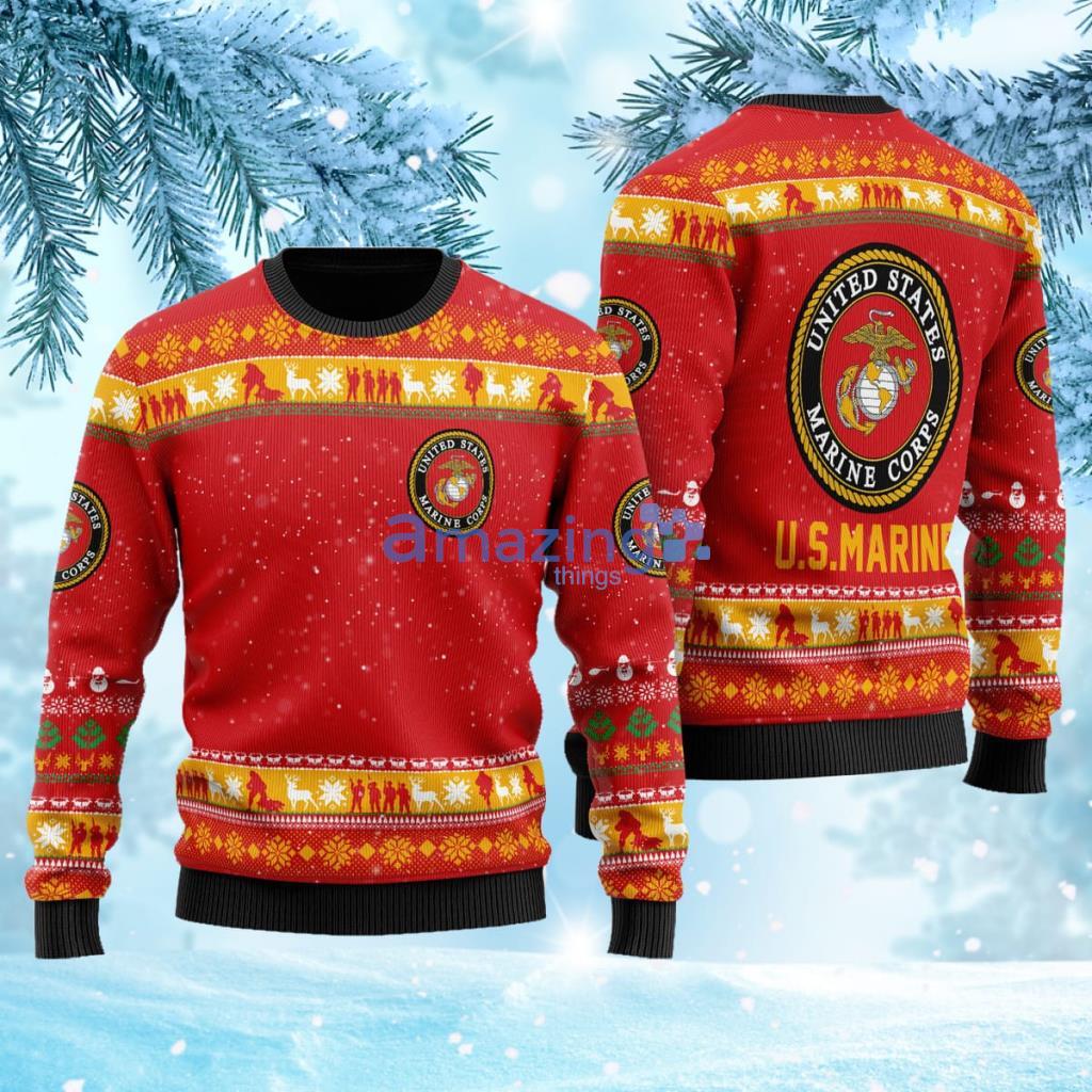 Merry Xmas The United States Marine Corps Christmas Ugly Sweater 3D Information
