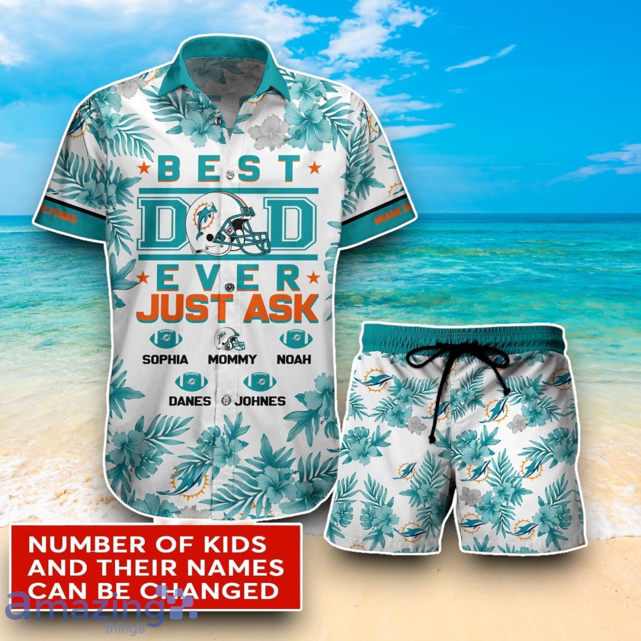 This design is available in a combo Hawaiian shirt & shorts. You can also get it separate. The default option is only one shirt or one pair of shorts. You have chosen a combo to get them both. This combo Miami Dolphins Combo Hawaiian Shirt And Shorts Custom Number & Name Trendy Combo For Fans is perfect to go to the beach. Get yours now or make a great gift.