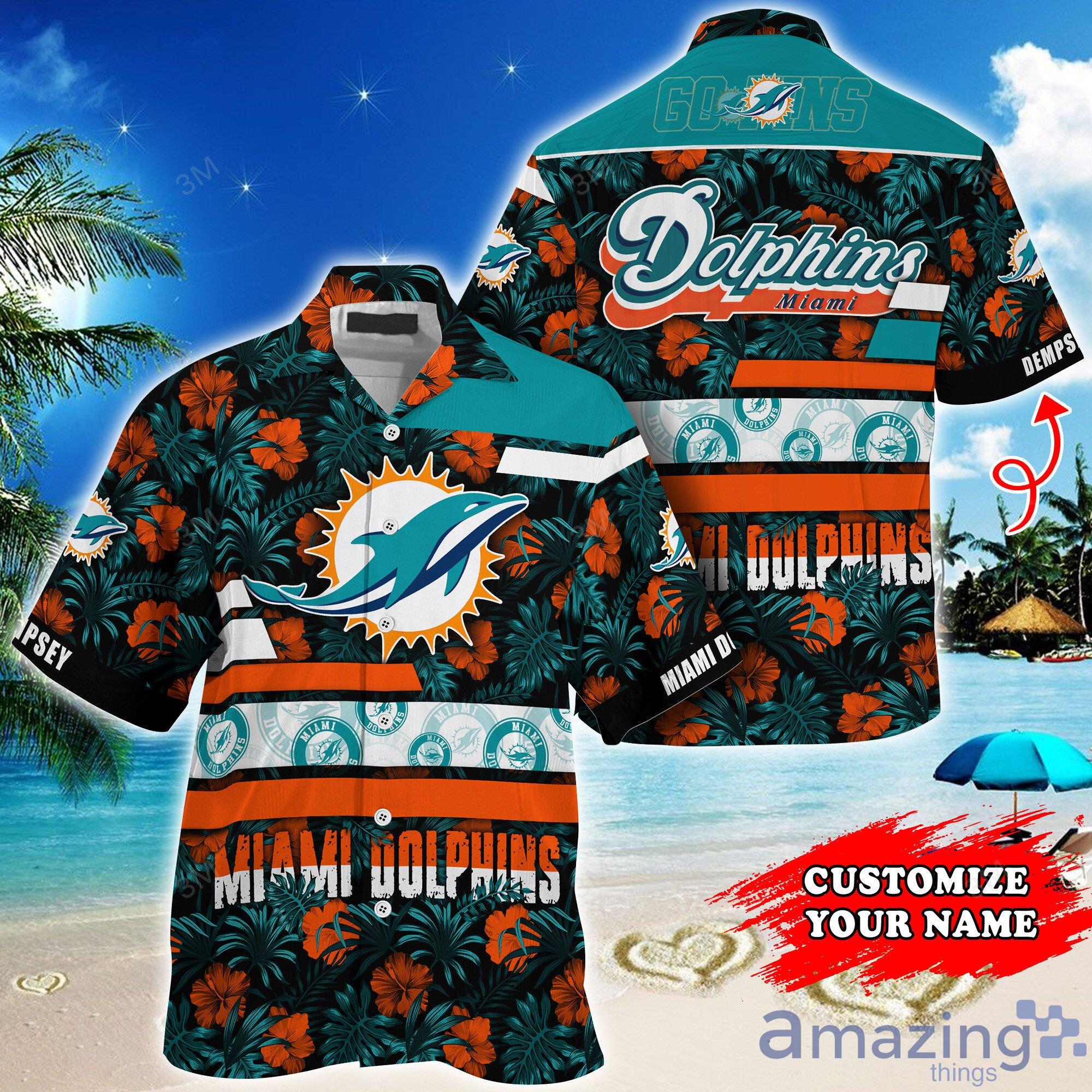 Miami Dolphins NFL Custom Name Tropical Habicus Pattern Short Sleeves Hawaiian Shirt