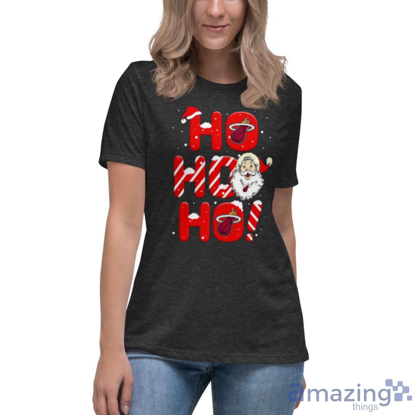 Merry Christmas, Miami Heat fans! Celebrate the holidays with this festive Miami Heat NBA Basketball Ho Ho Ho Santa Claus Merry Christmas Shirt. This shirt features a large Santa Claus design with the words “Merry Christmas” and “Ho Ho Ho” in red and green lettering. The shirt is made of 100% cotton for a comfortable and breathable fit. It’s the perfect shirt to wear to your next holiday party or family gathering. Order yours today!