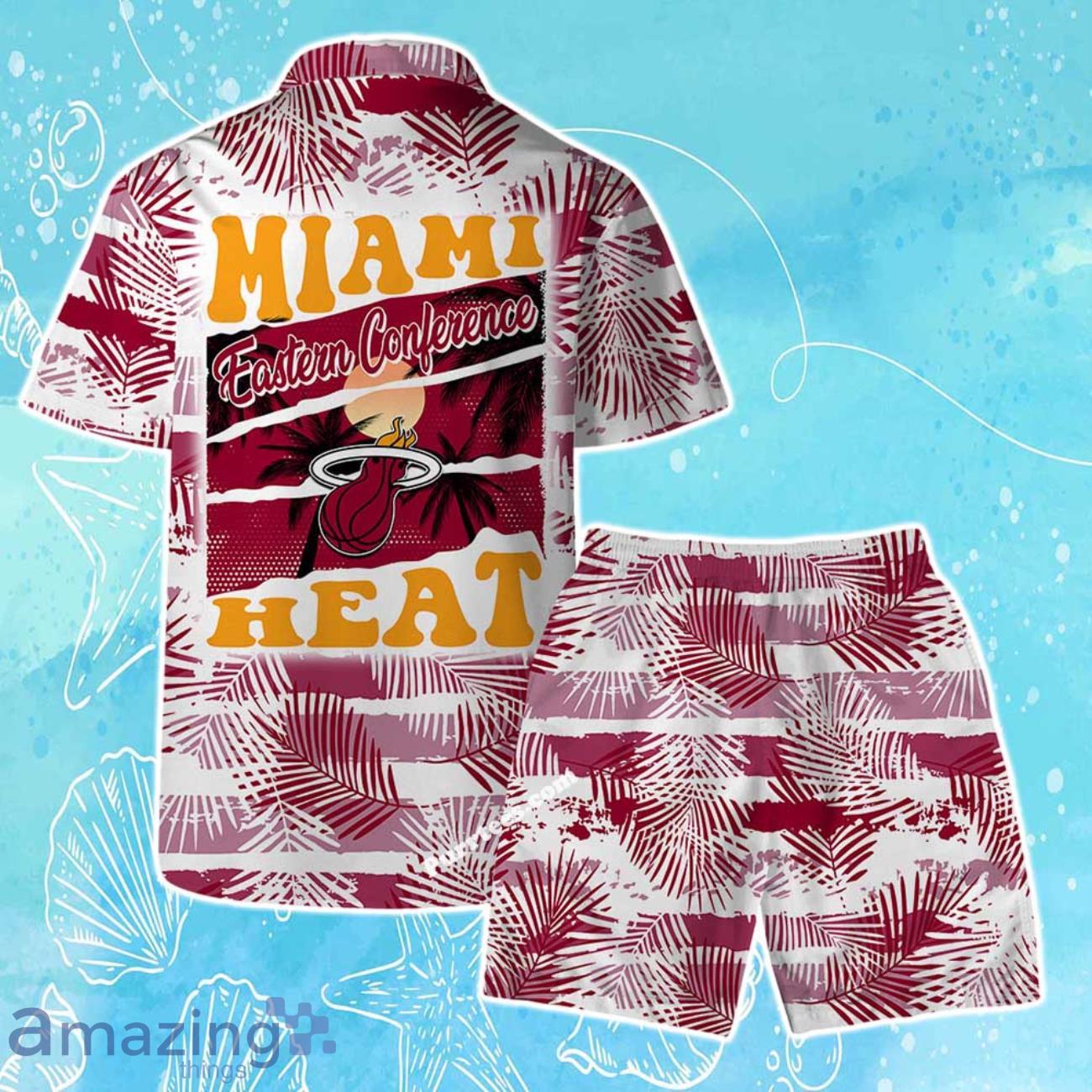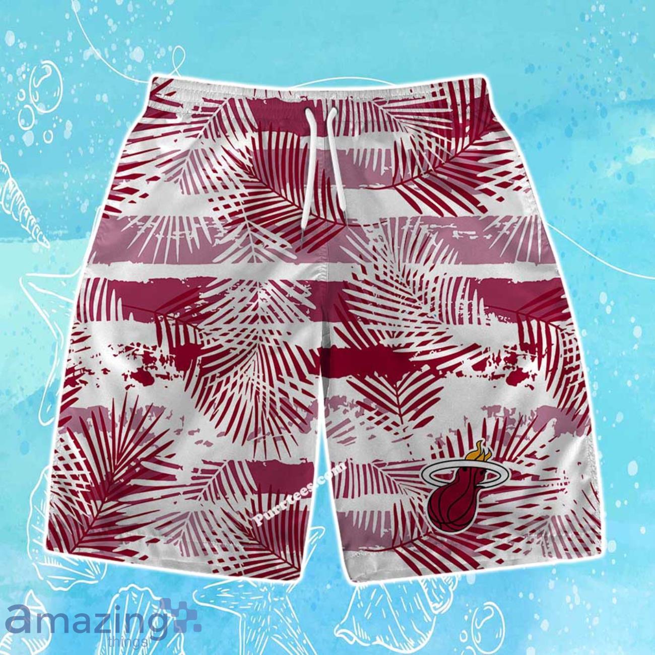 Miami Heat Team Logo Pattern Leaves Tropical Hawaiian Shirt & Short Details:
