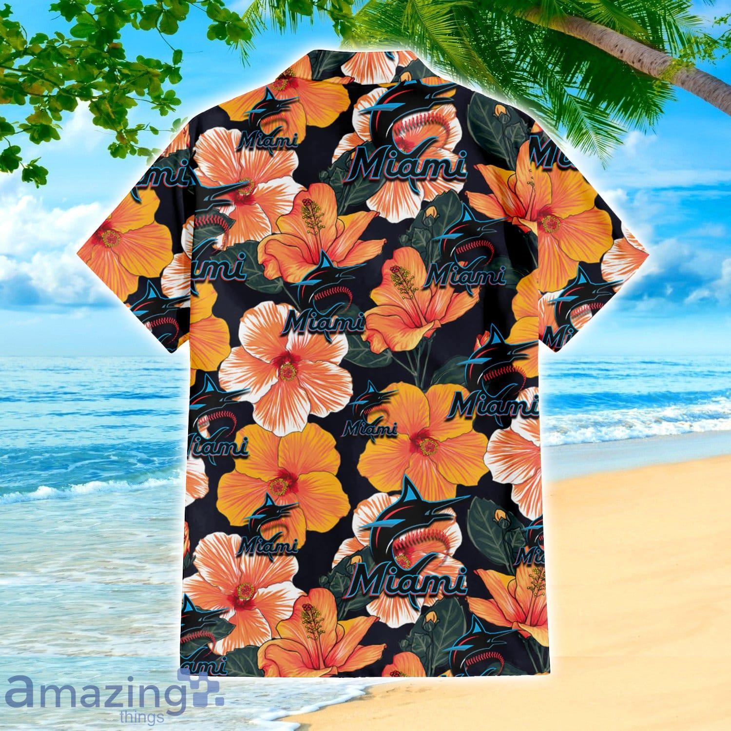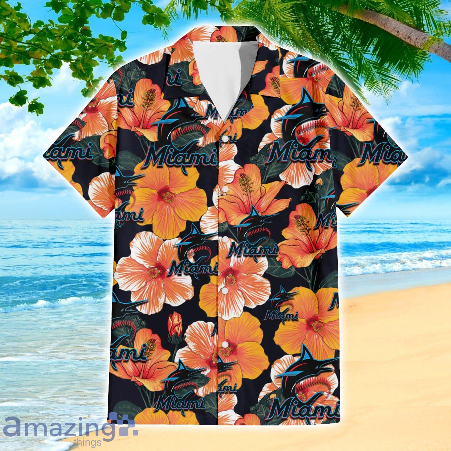 Miami Marlins Big Logo And Orange Hibiscus Hawaiian Shirt Sport Fans Gift Details: