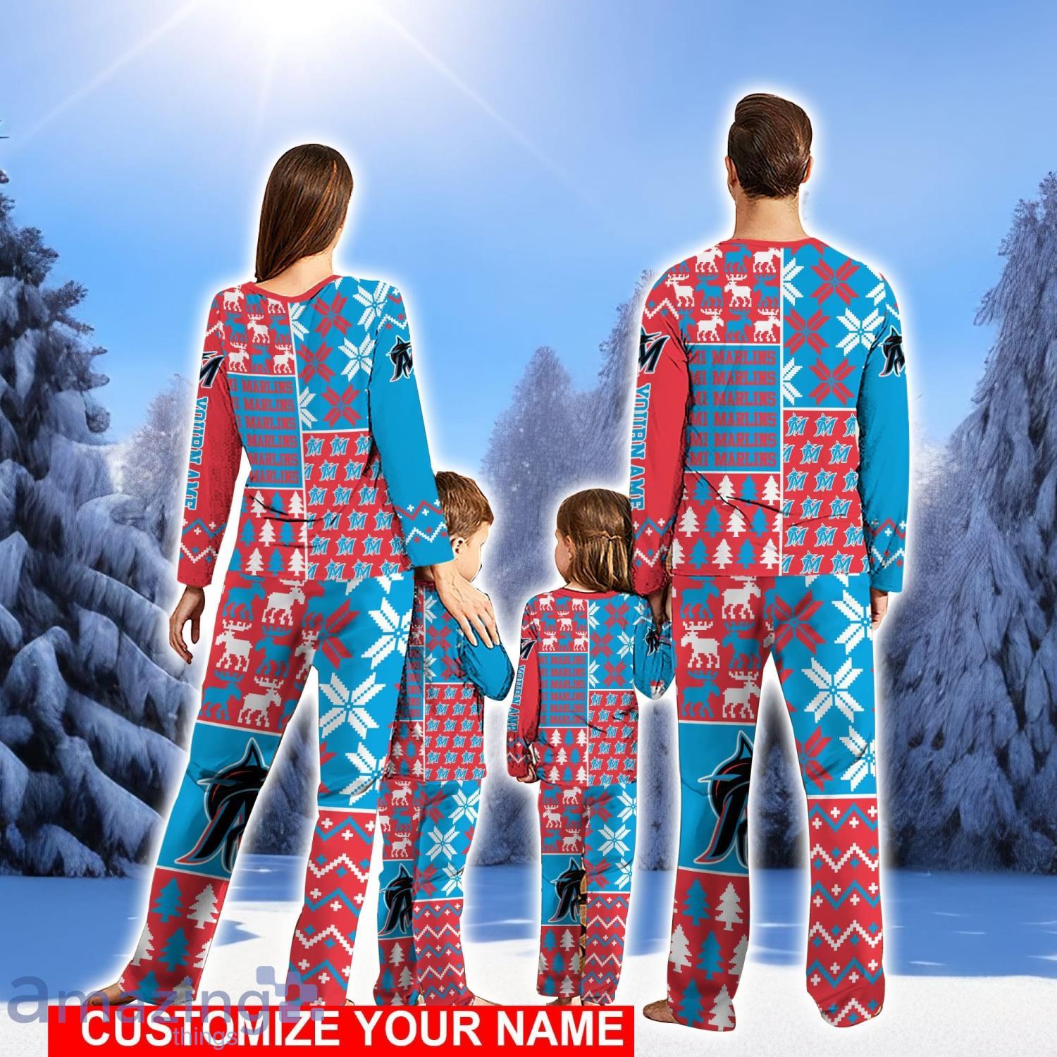 Some of the Miami Marlins Pajamas Set Personalized Name For Sport Fans Christmas Pajamas Set For Family photos