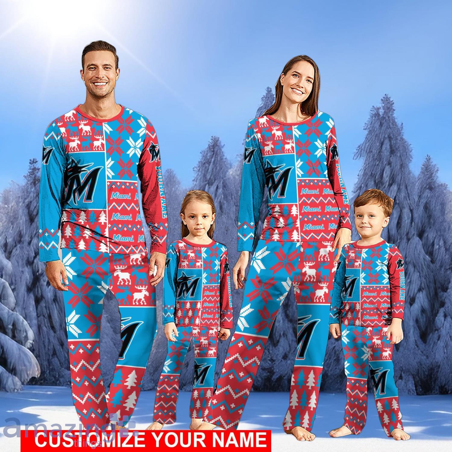 Miami Marlins Pajamas Set Personalized Name For Sport Fans Christmas Pajamas Set For Family Information