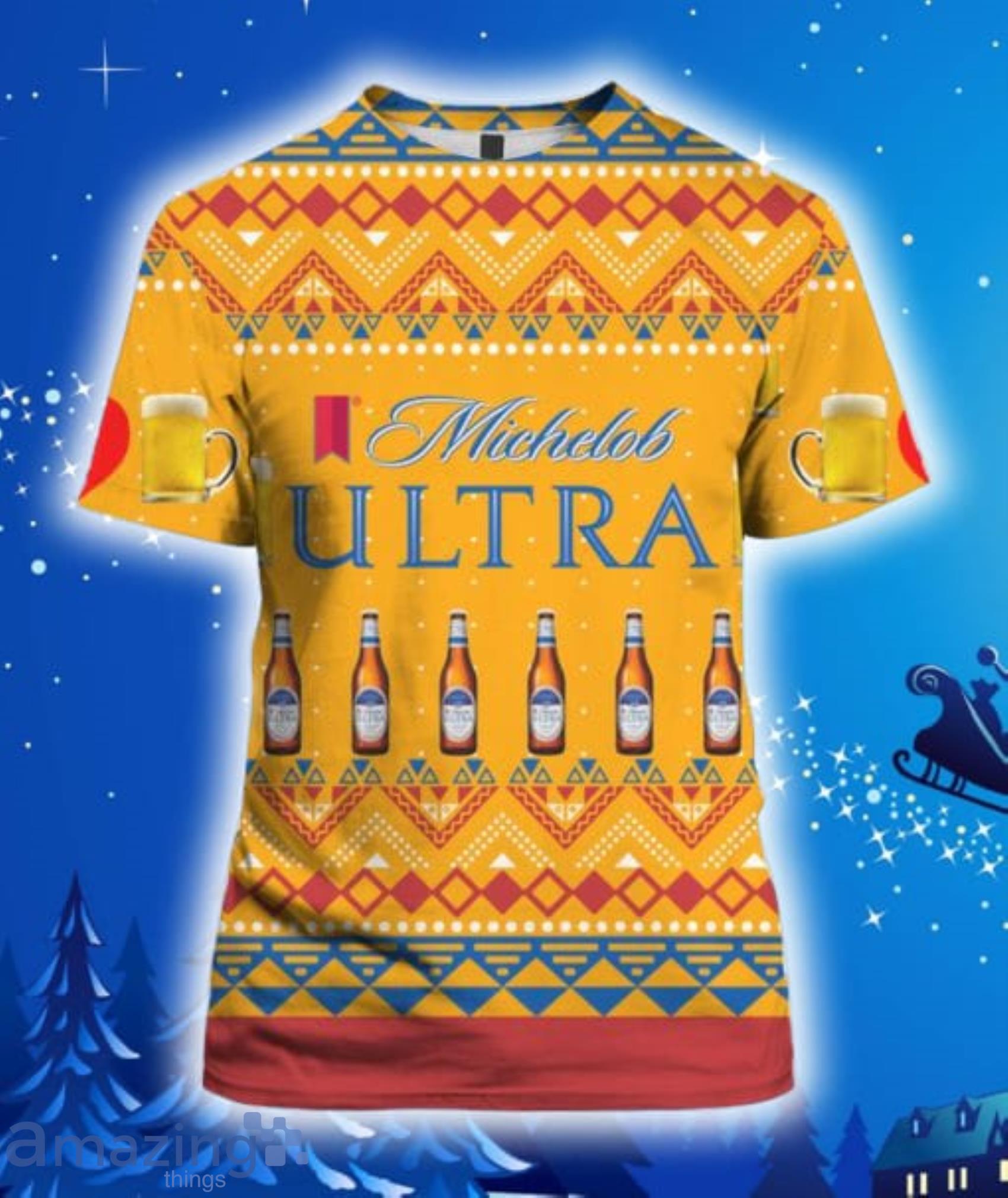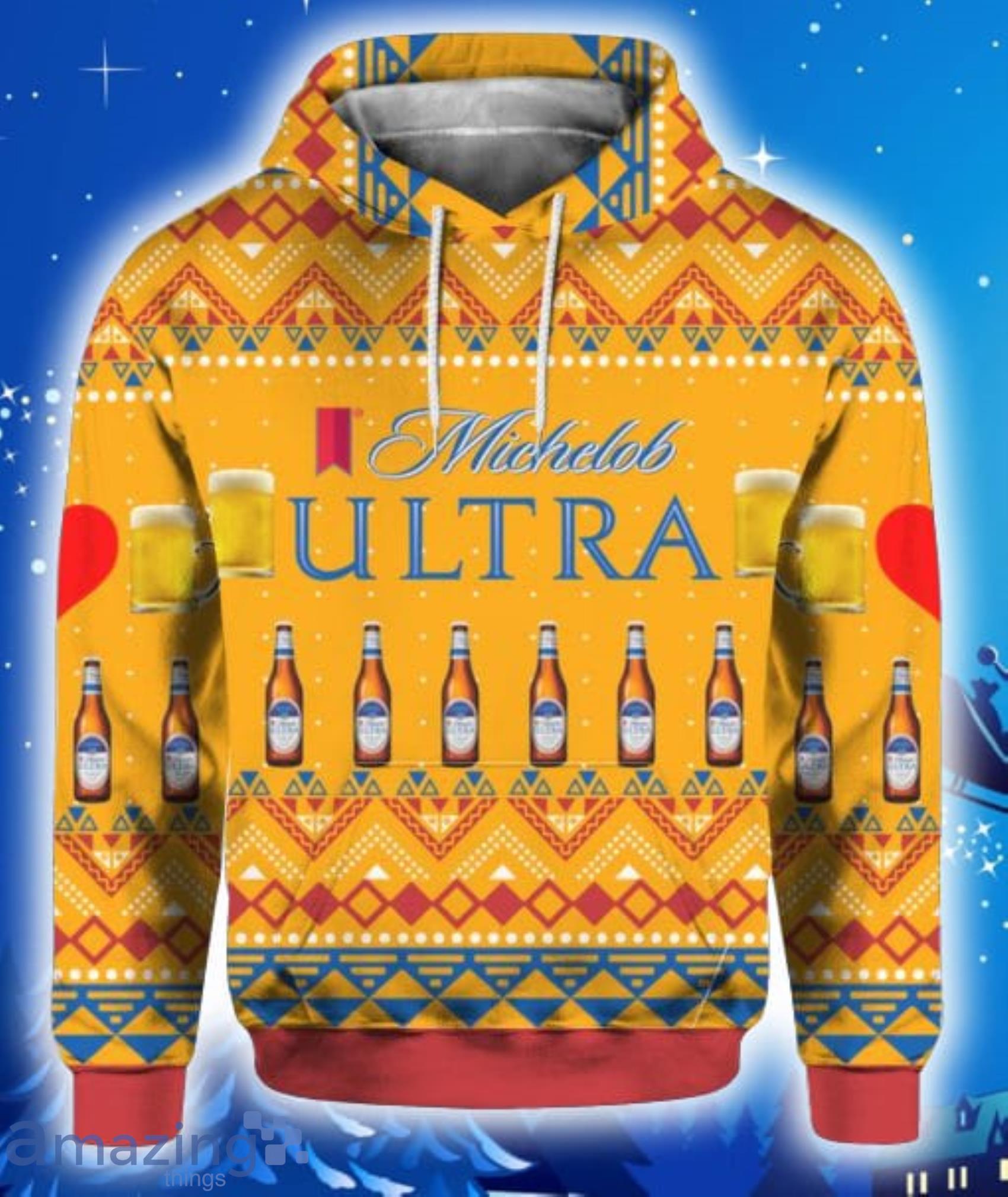 Perfect design for holiday. Get yours this shirt or this is a cute item for your daddy, gift for your mom, and gift for friends on any occasion. buy a cute Michelob Ultra Beer Bottles All Over Print 3D Hoodie, T-Shirt, Christmas Sweater now.
