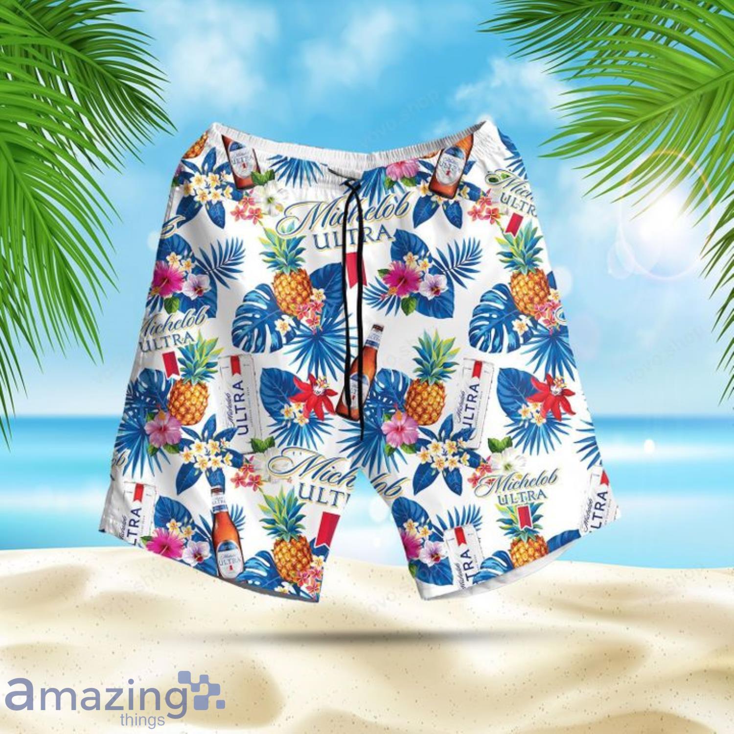 Michelob Ultra Beer Pineapple And Tropical White Short Sleeve Hawaiian Shirt And Short