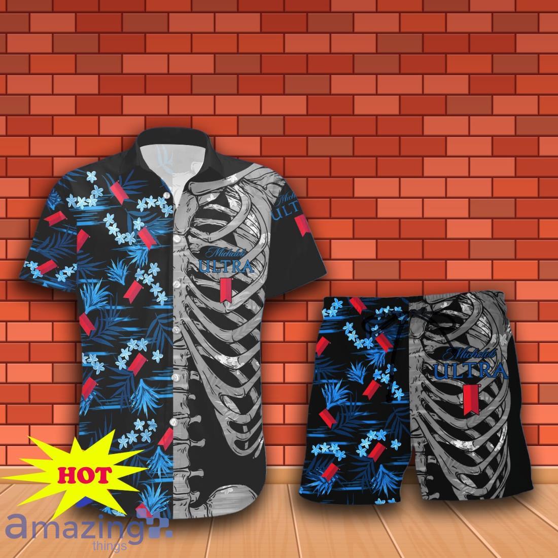 Michelob Ultra Button Skeleton Hawaiian Shirt And Short Gift Ideas For Men Women Details: