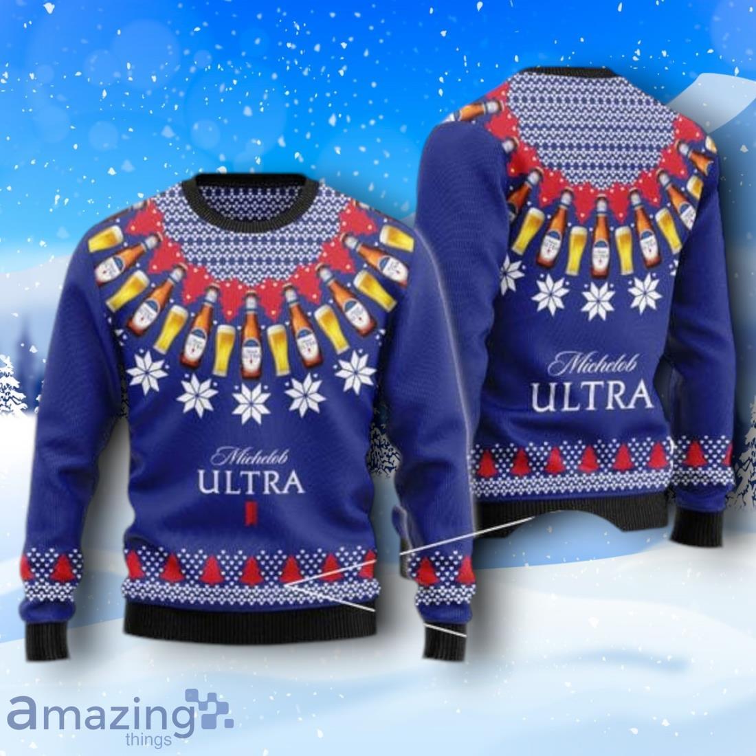Get into the festive spirit with the Michelob ULTRA Heart Pattern Fair Isle Ugly Christmas Sweater! This cozy and stylish sweater features a fun heart pattern design that will make you stand out at any holiday gathering. Made with high-quality materials, this sweater is not only comfortable to wear but also durable. Perfect for spreading holiday cheer while enjoying your favorite Michelob ULTRA beer. Don’t miss out on the opportunity to rock this festive sweater this holiday season!