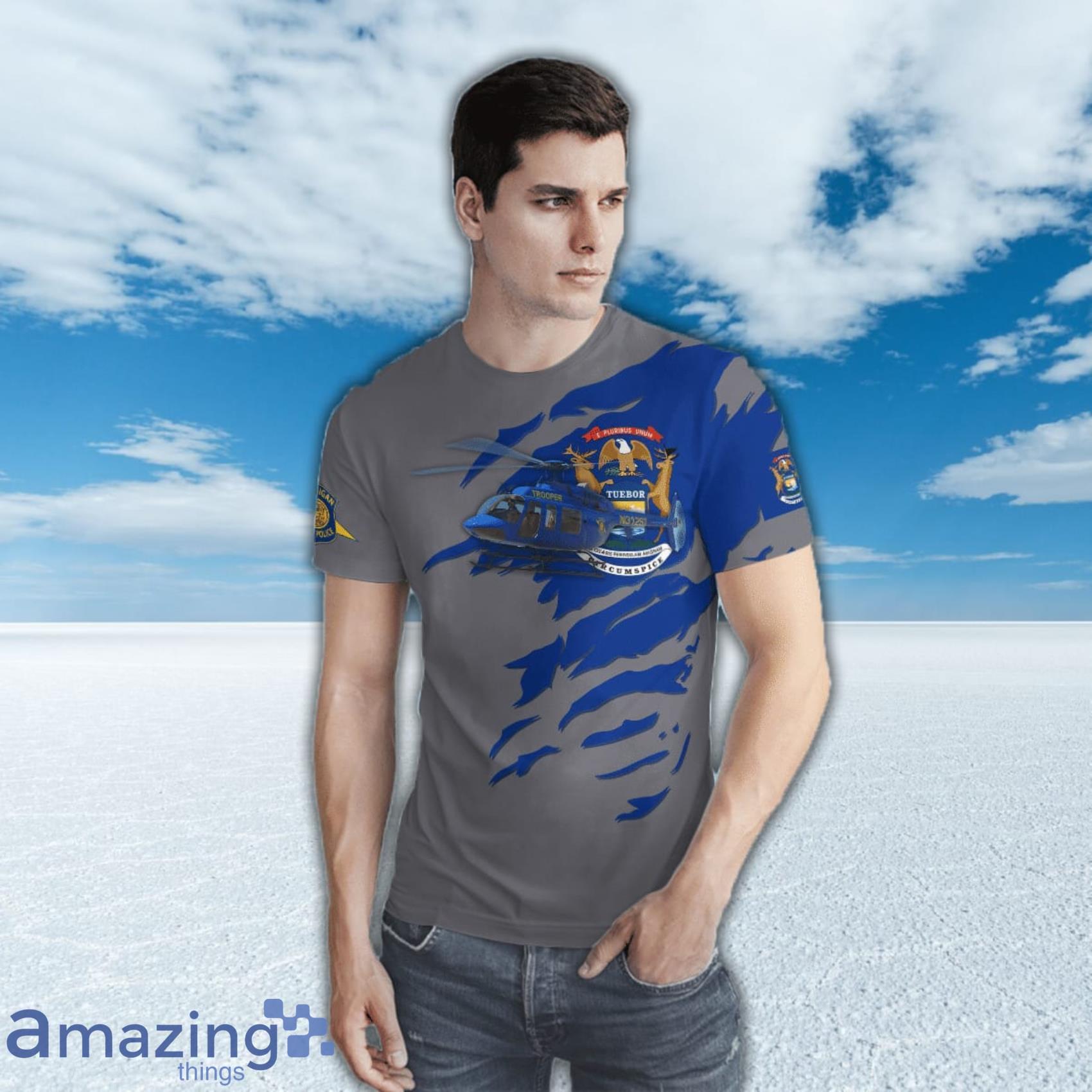 Michigan State Police Bell 407G All Over Print 3D T-Shirt Information
