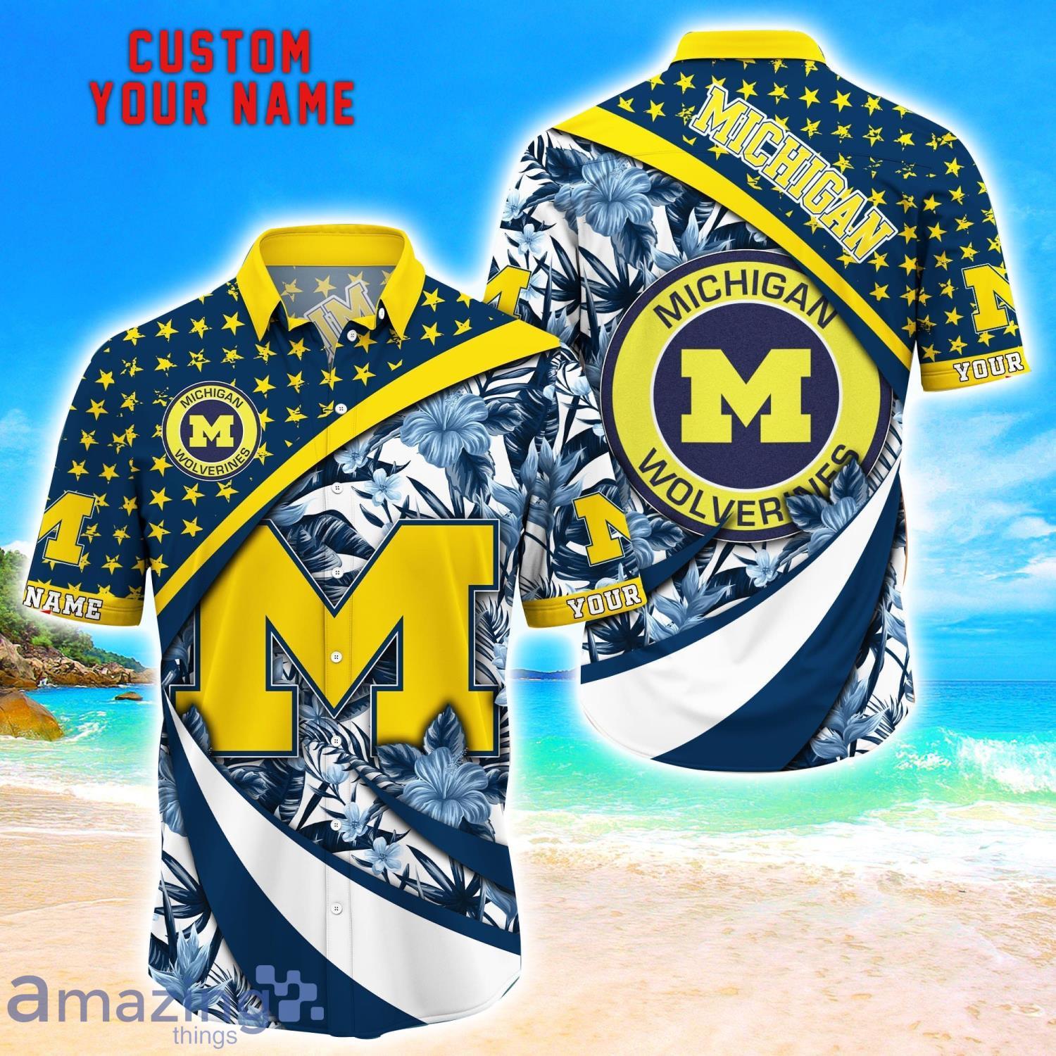 Michigan Wolverines Custom Name Floral Hawaiian Shirt Summer Beach Shirt For Fans Details: