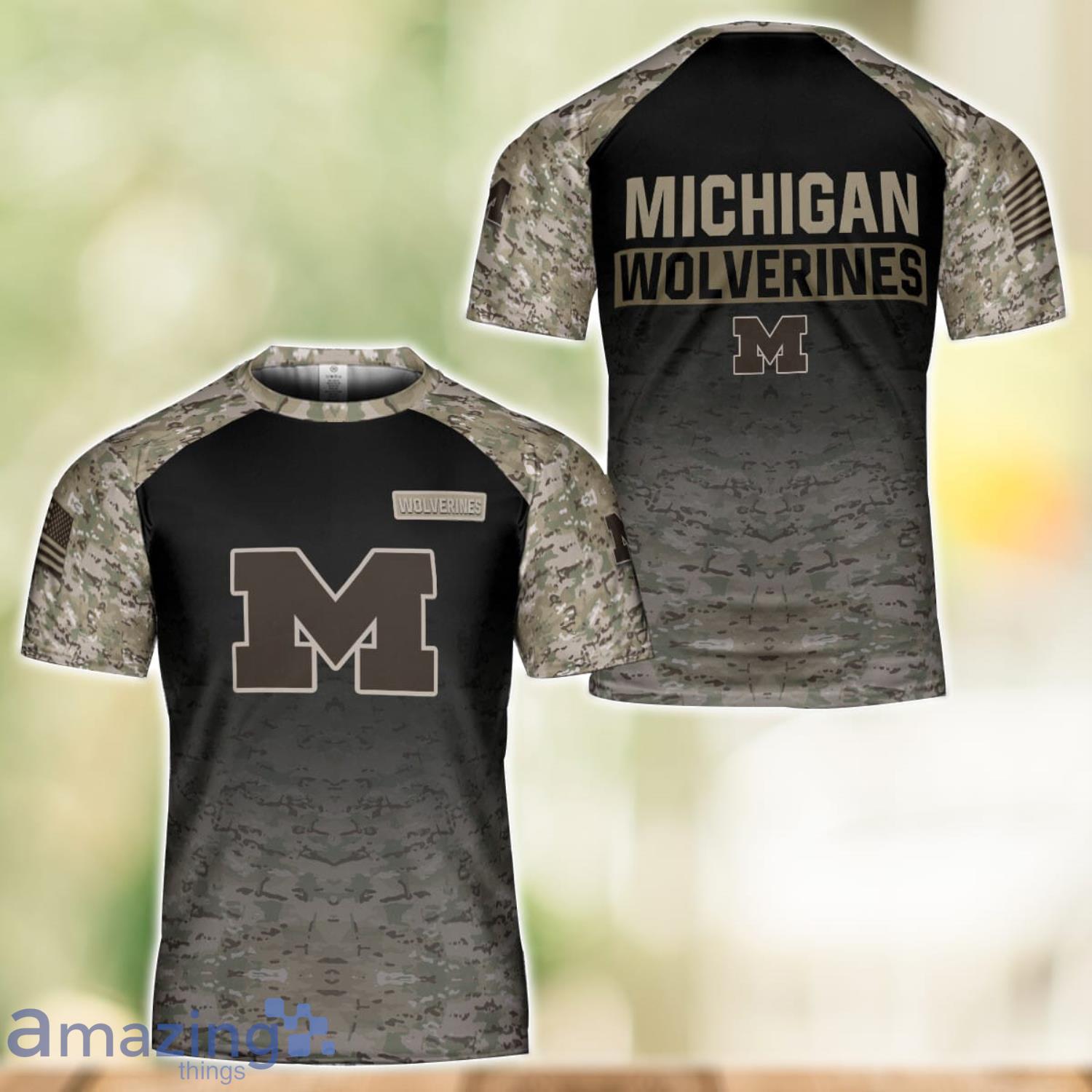 Michigan Wolverines Warrior Camo T-Shirt 3D All Printed