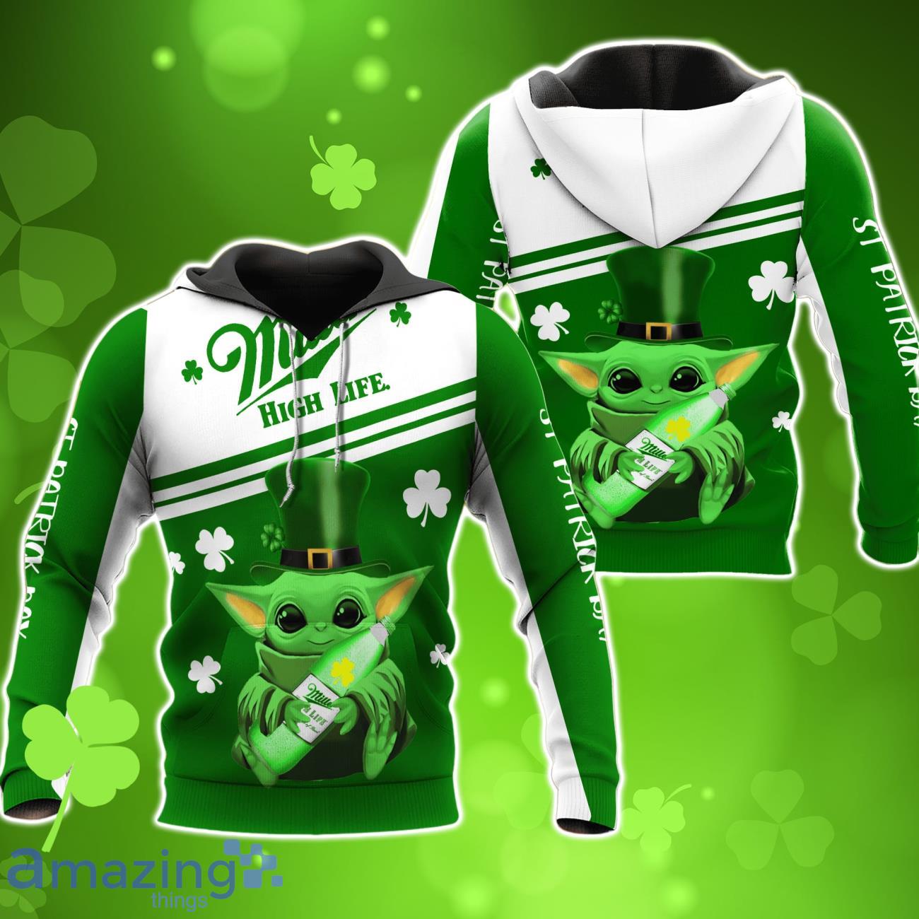 Miller High Life Irish St Patrick Day Baby Yoda 3D AOP Hoodies For Men And Women Information
