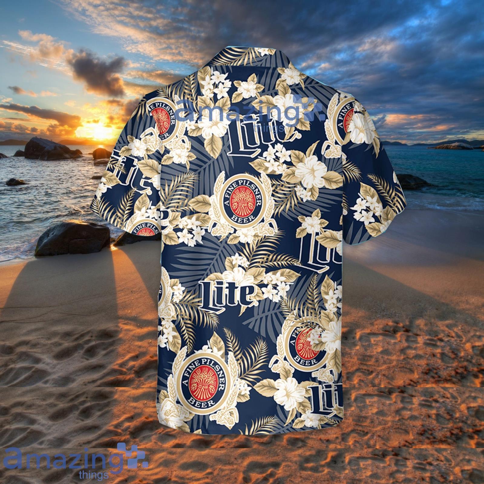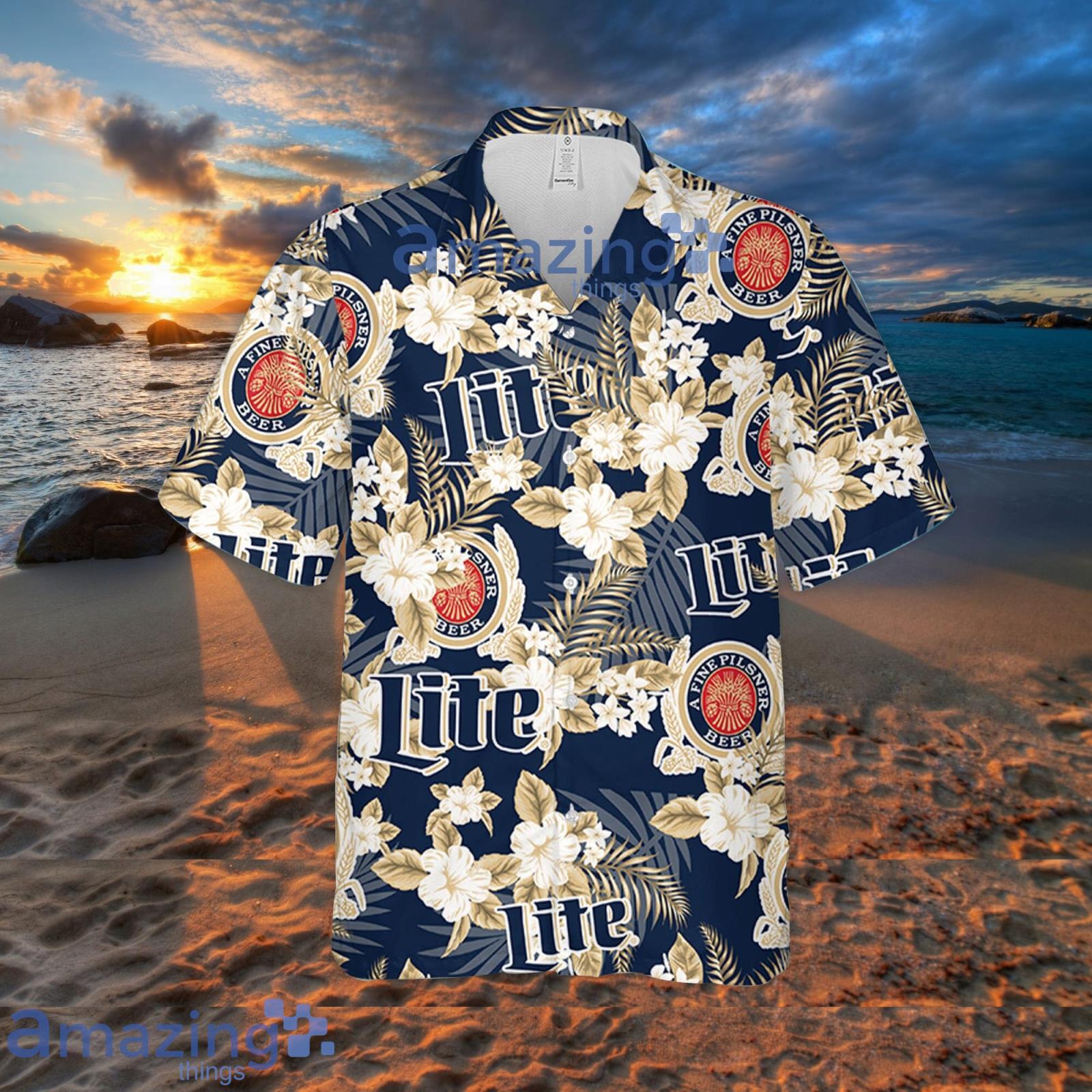 Miller Lite Flowers Pattern Hawaiian Shirt Summer Gift For Beer Lover Details: