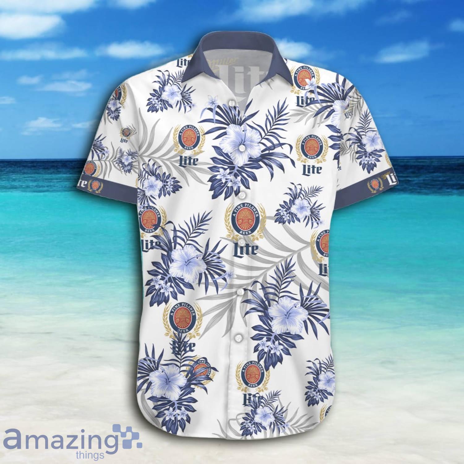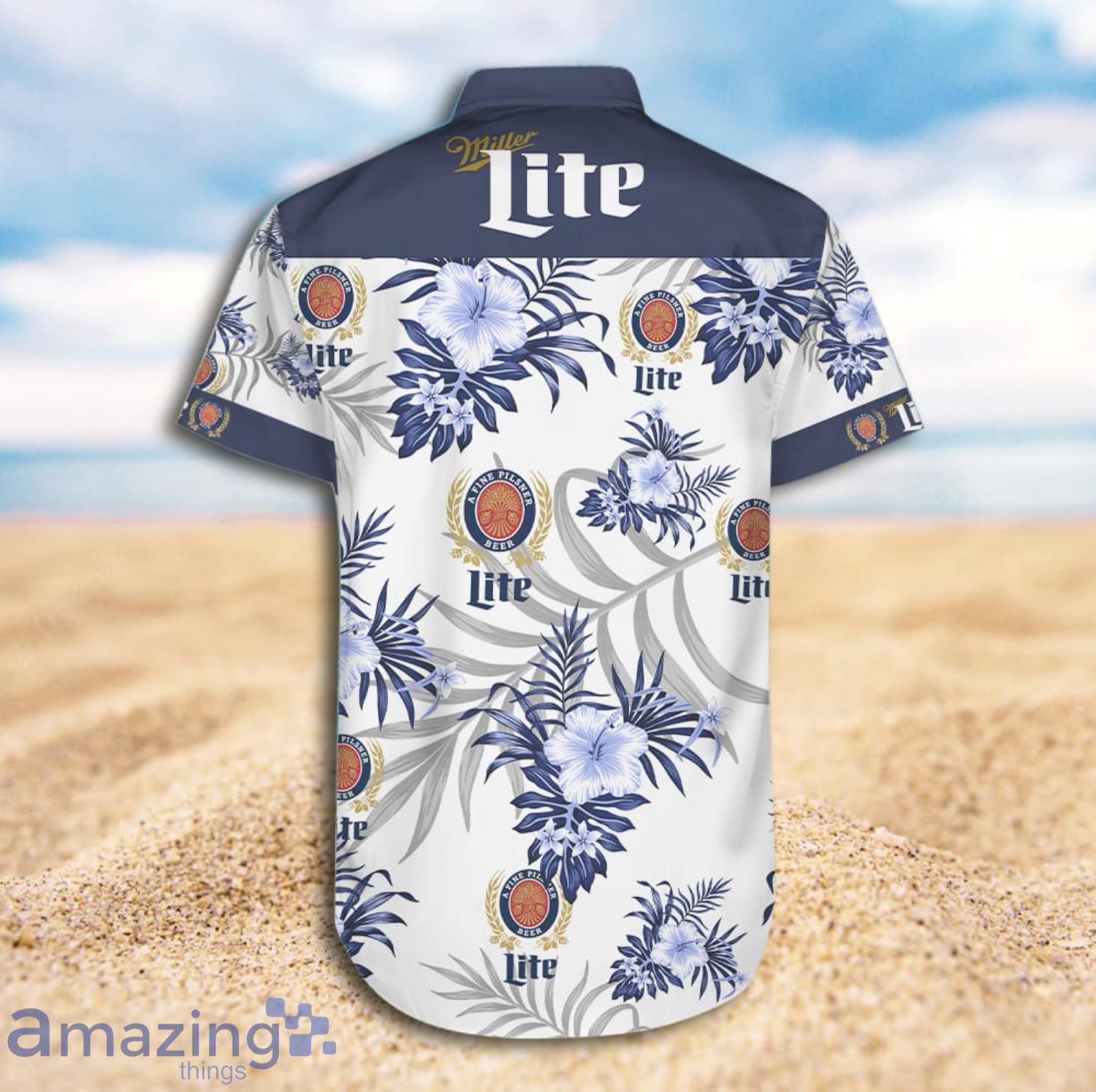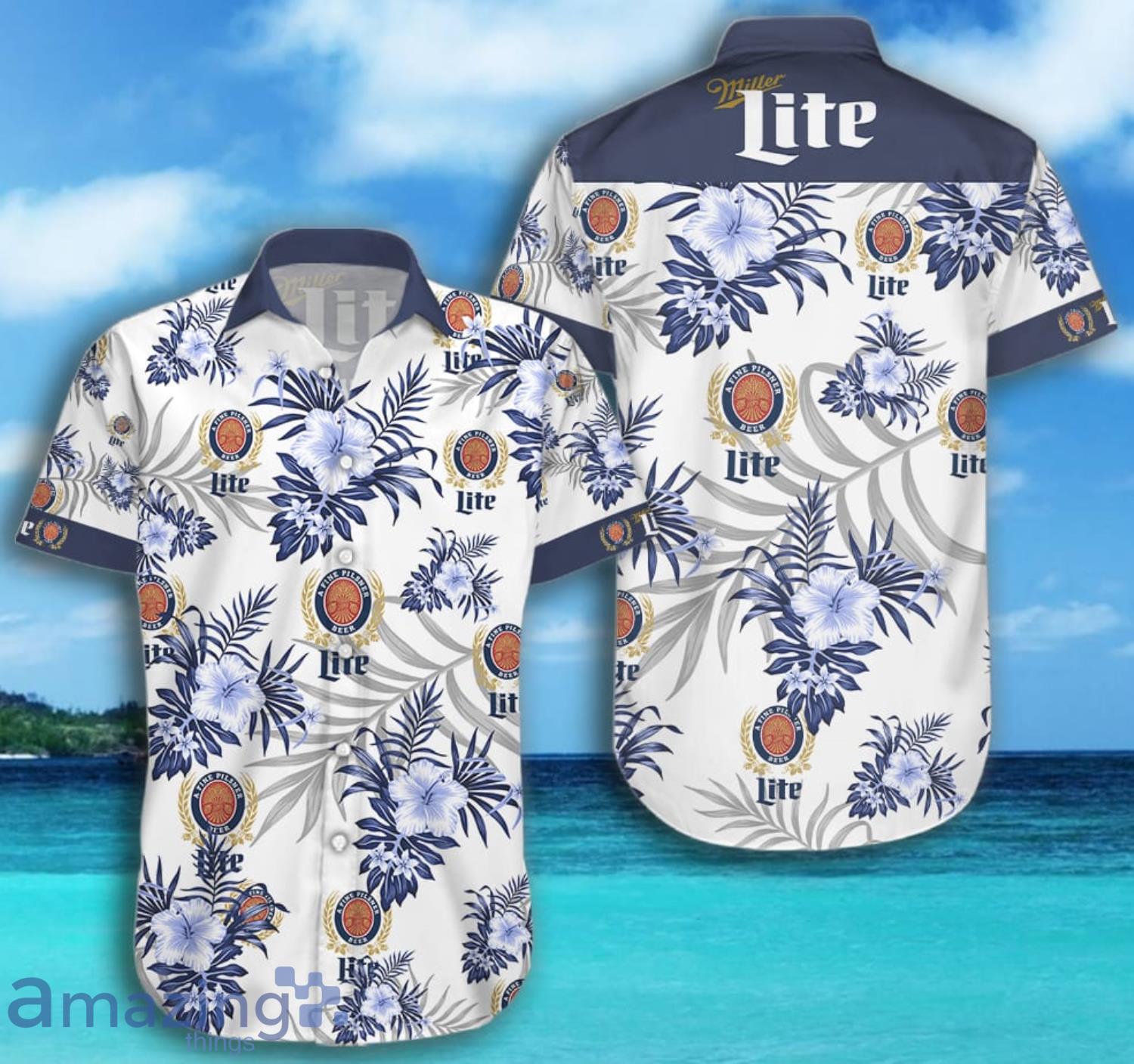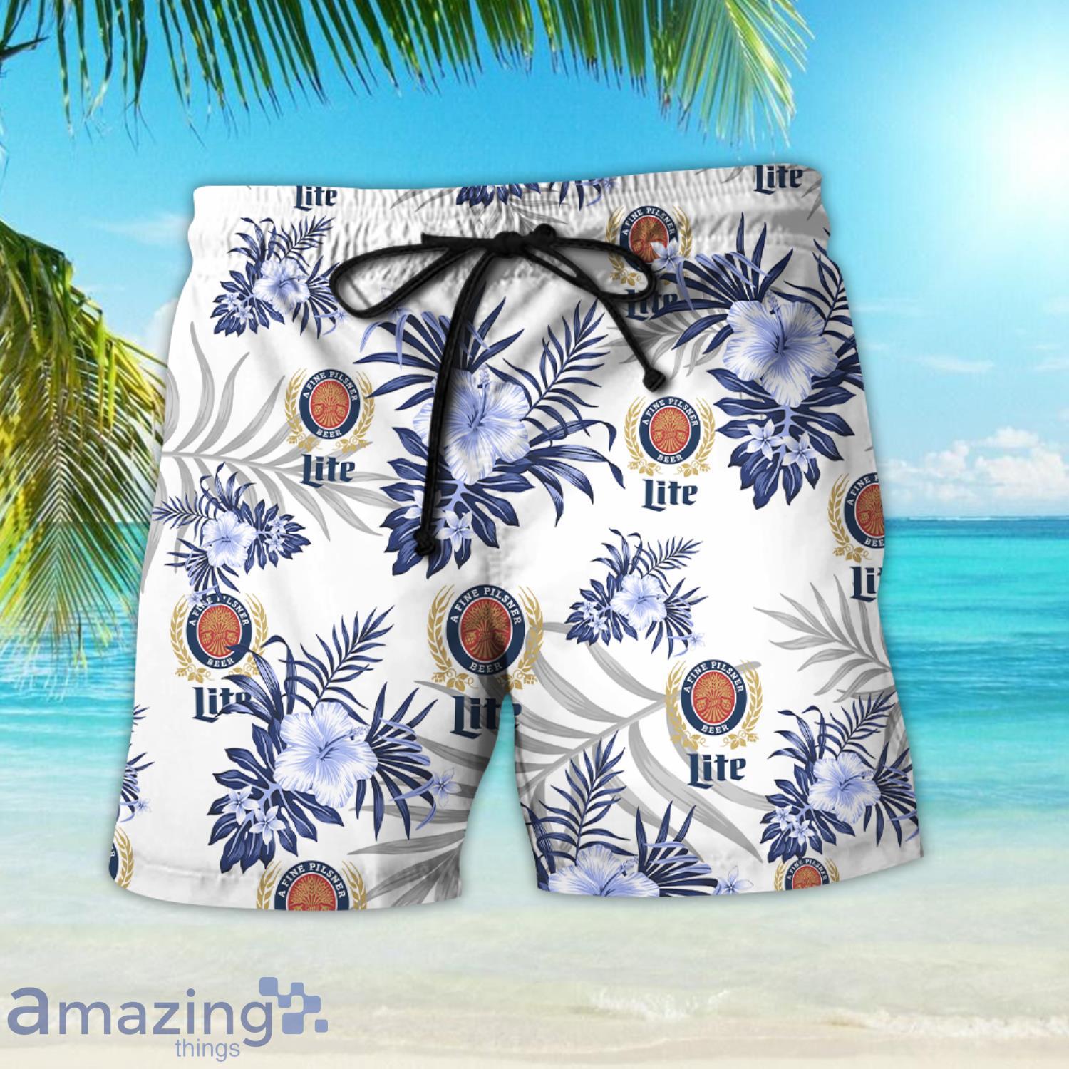 Miller Lite Tropical Pattern White Short Sleeve Hawaiian Shirt And Short