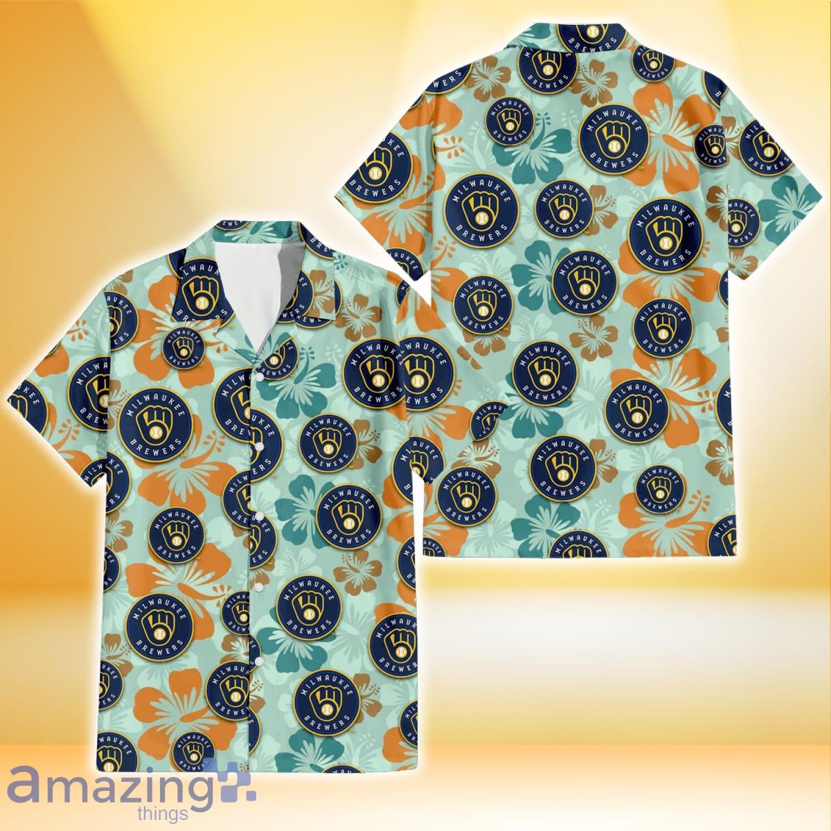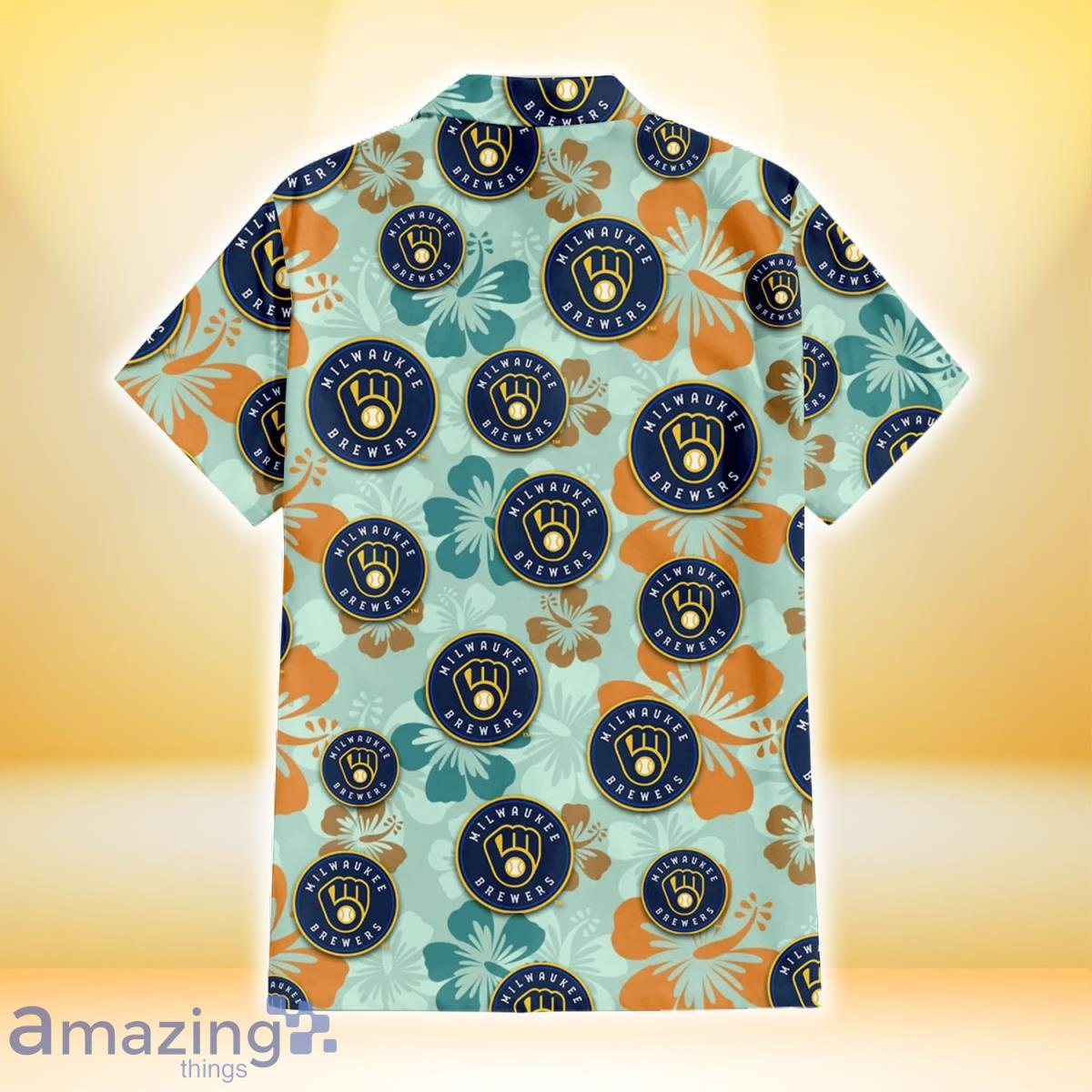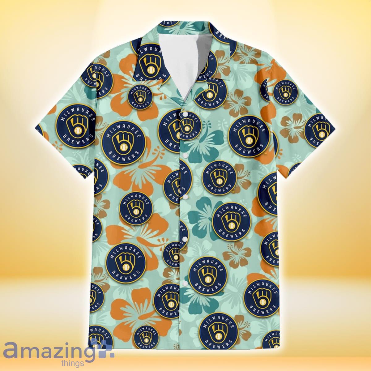 Some of the Milwaukee Brewers Orange Green Hibiscus Pale Green Background 3D Hawaiian Shirt Gift For Fans photos